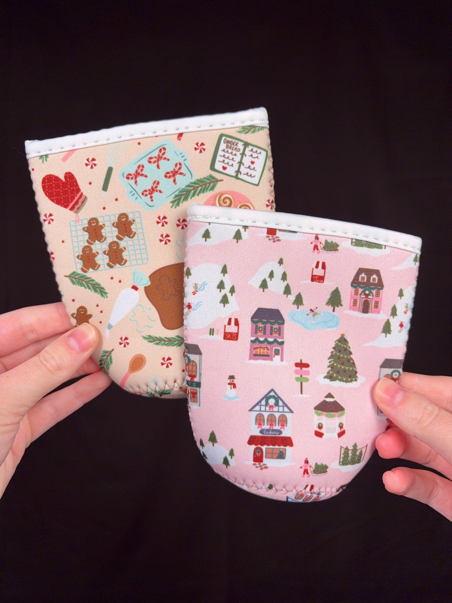 Enjoy your coffee iced and your hands dry when you use our new holiday cup coozies.