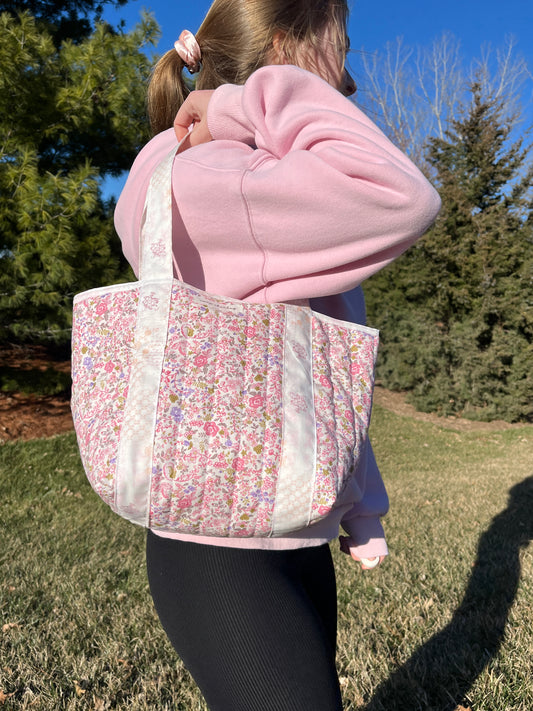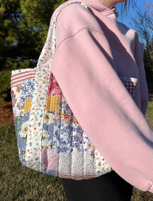 I love the tote and I'm very happy to have a one of a kind vintage style bag. I have been sewing / quilting for over thirty years and I am very impressed with the quality of your work. So much so that I went back for a matching makeup bag. Thank you!