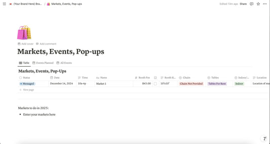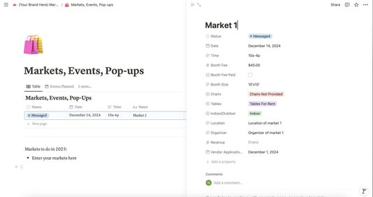 Notion Markets, Pop-Ups, & Events Tracker Digital Template