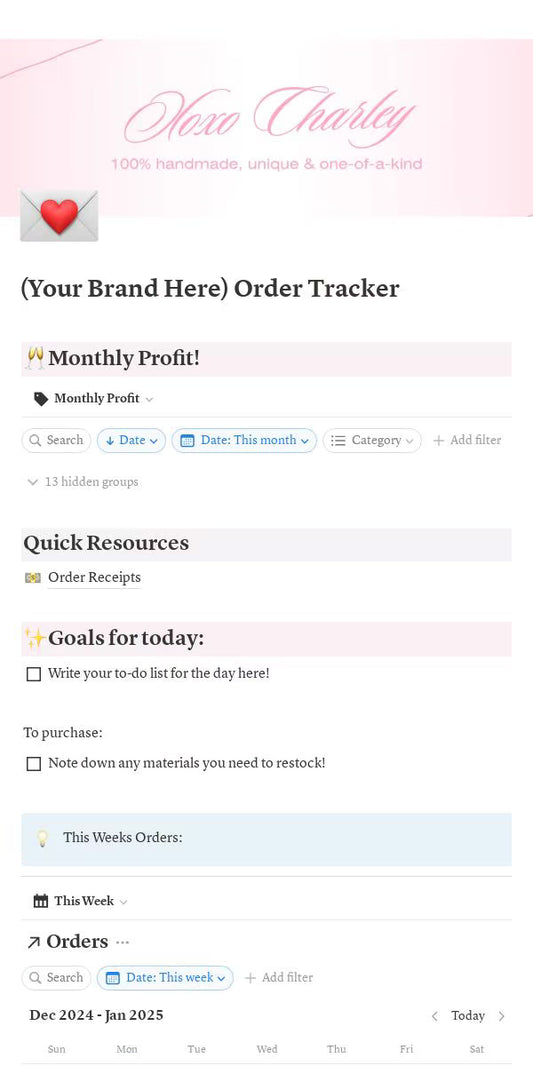 Utilize the exact Notion tools Hailey uses to manage and grow Xoxo Charley. Now available for you to streamline your own business.