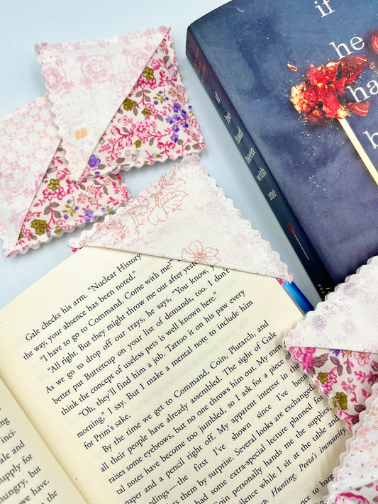 Ditsy Picnic Pink Fabric Corner Bookmark