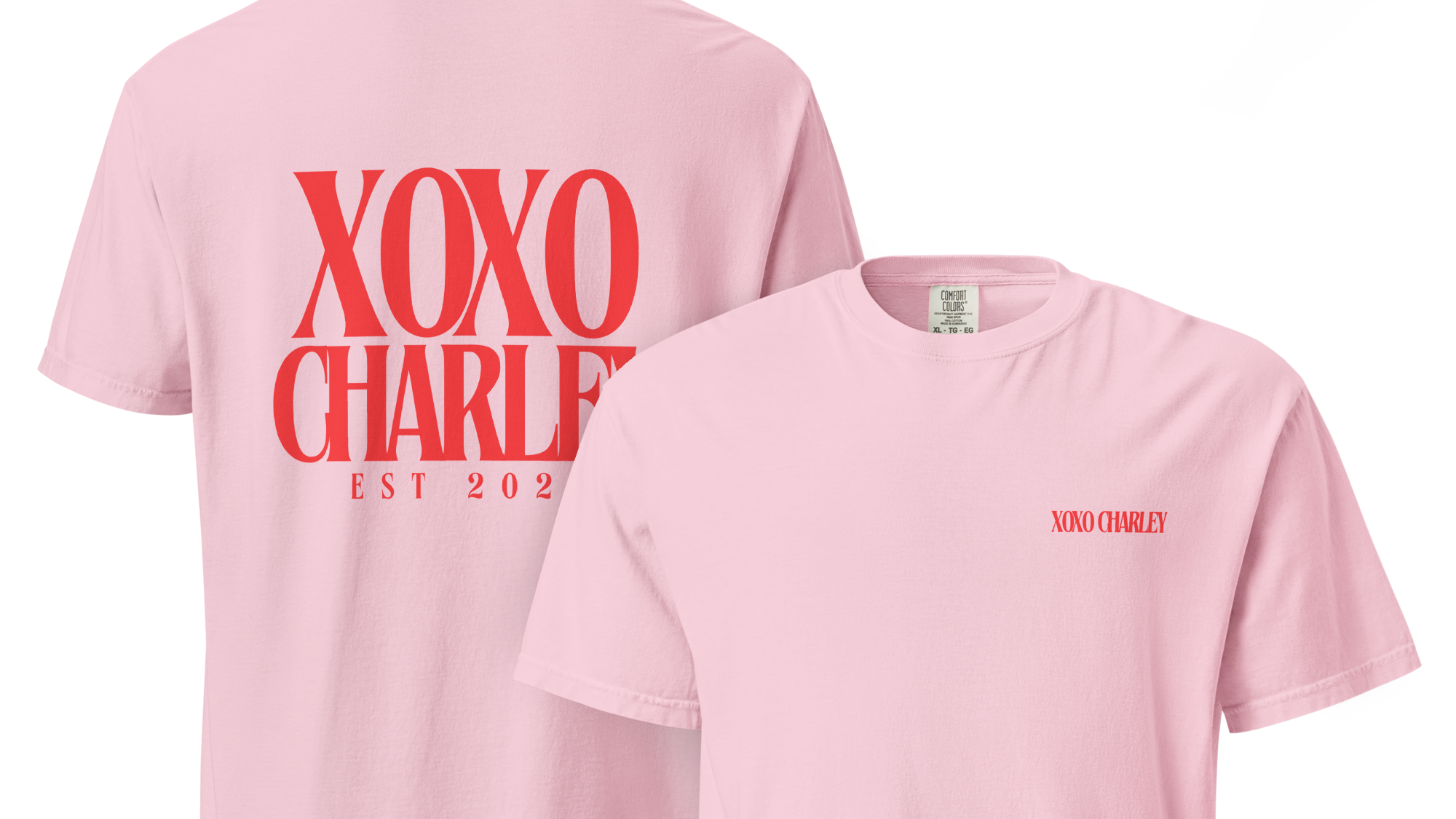 "Xoxo Charley est. 2022" on Blossom Tee PREORDER