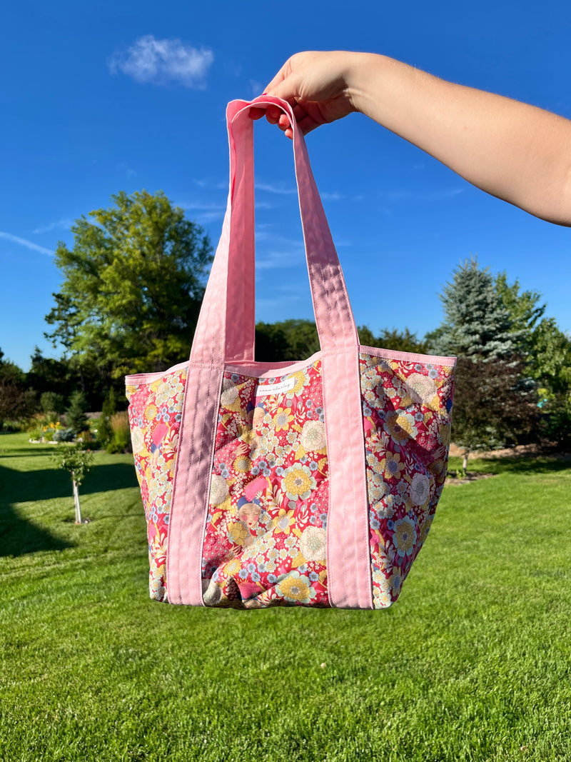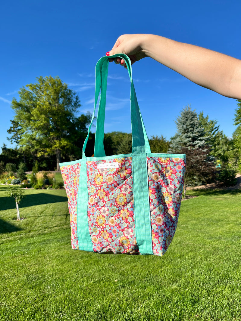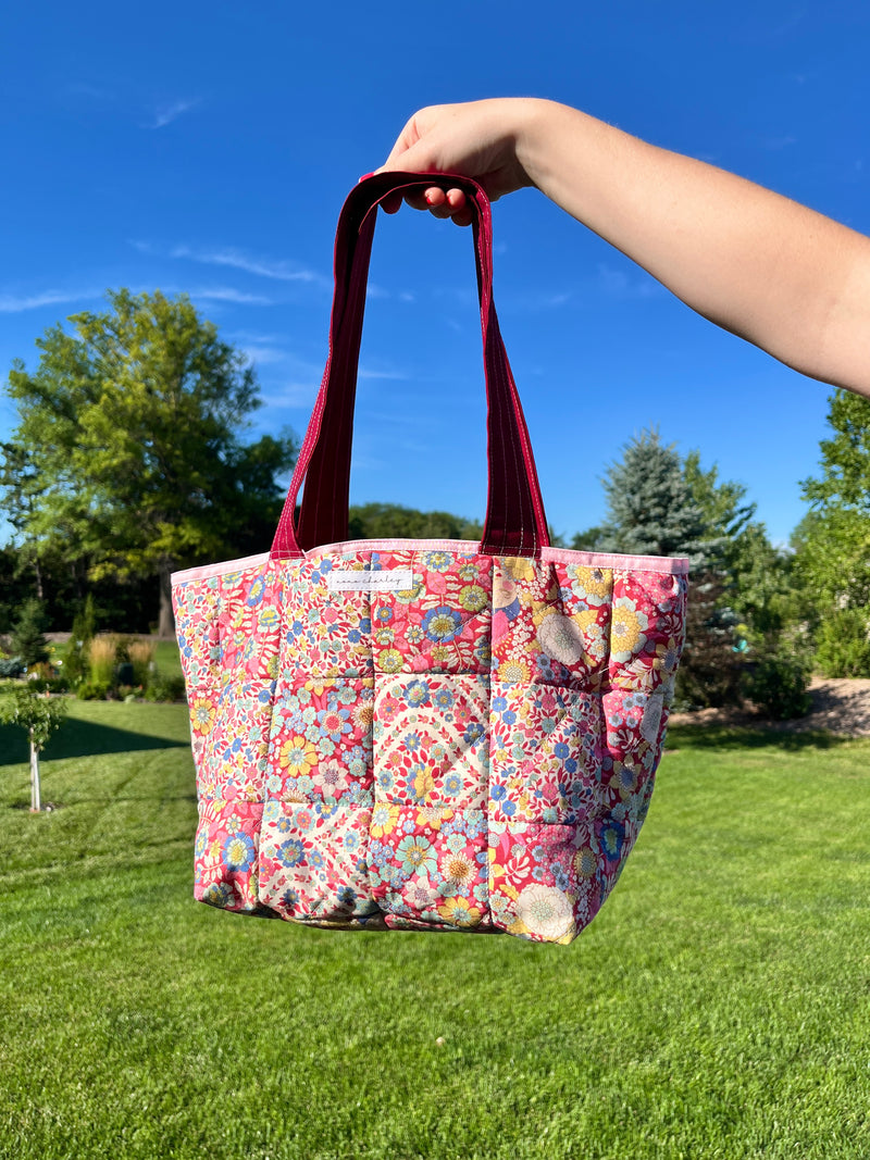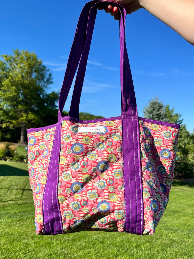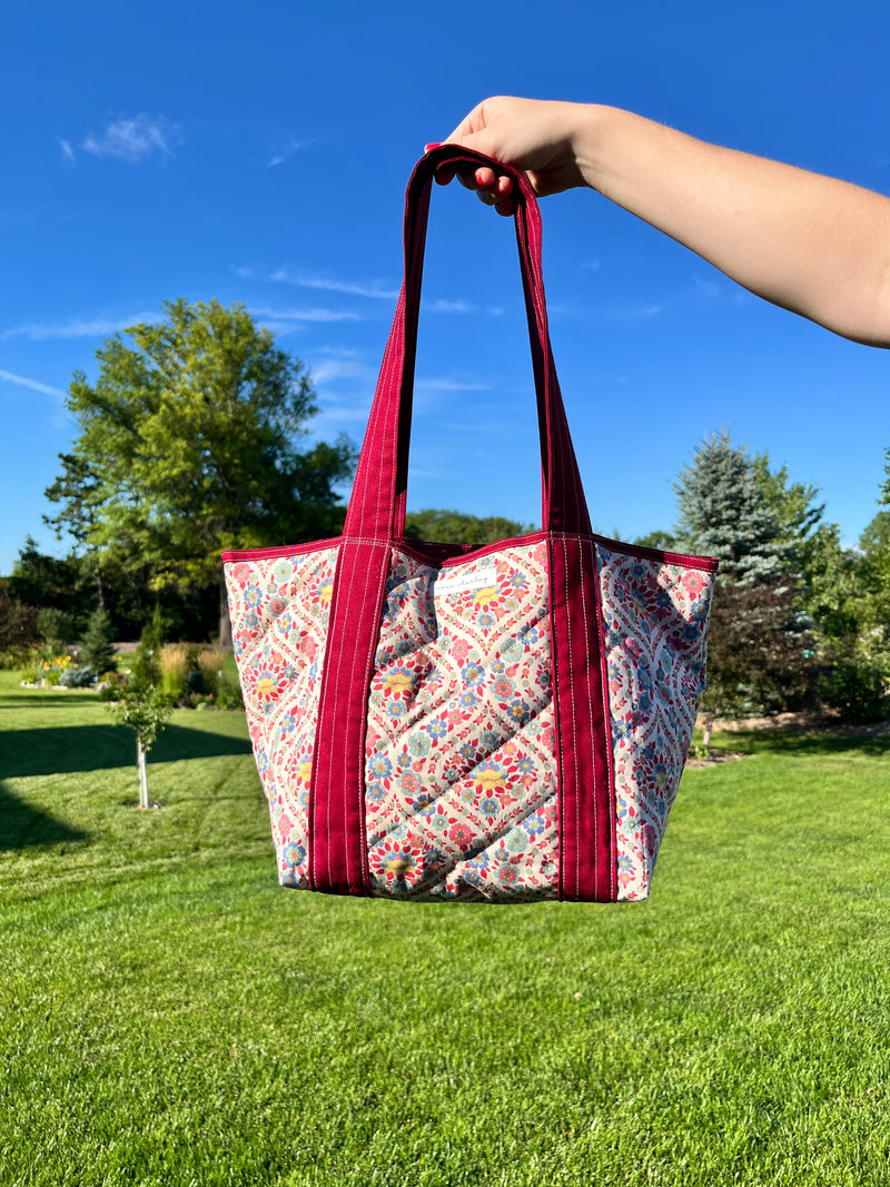 The Crimson Meadow Collection was inspired by the bright bold colors of summer and the need for a carry-all bag during farmers markets, festivals, and vacations. This collection featured 6 Tote Bags, 1 Kindle Sleeve, 2 Zipper Pouches, 2 Keychain Wallets, and 5 Fabric Bowls.