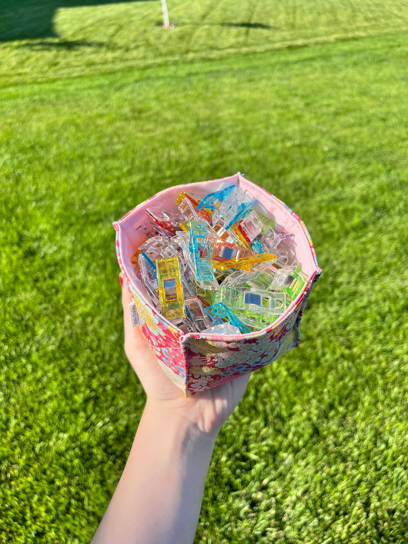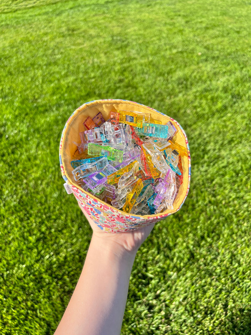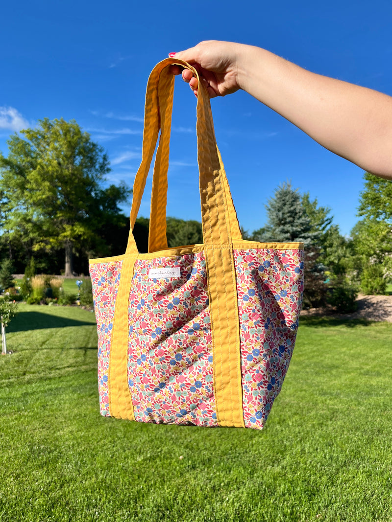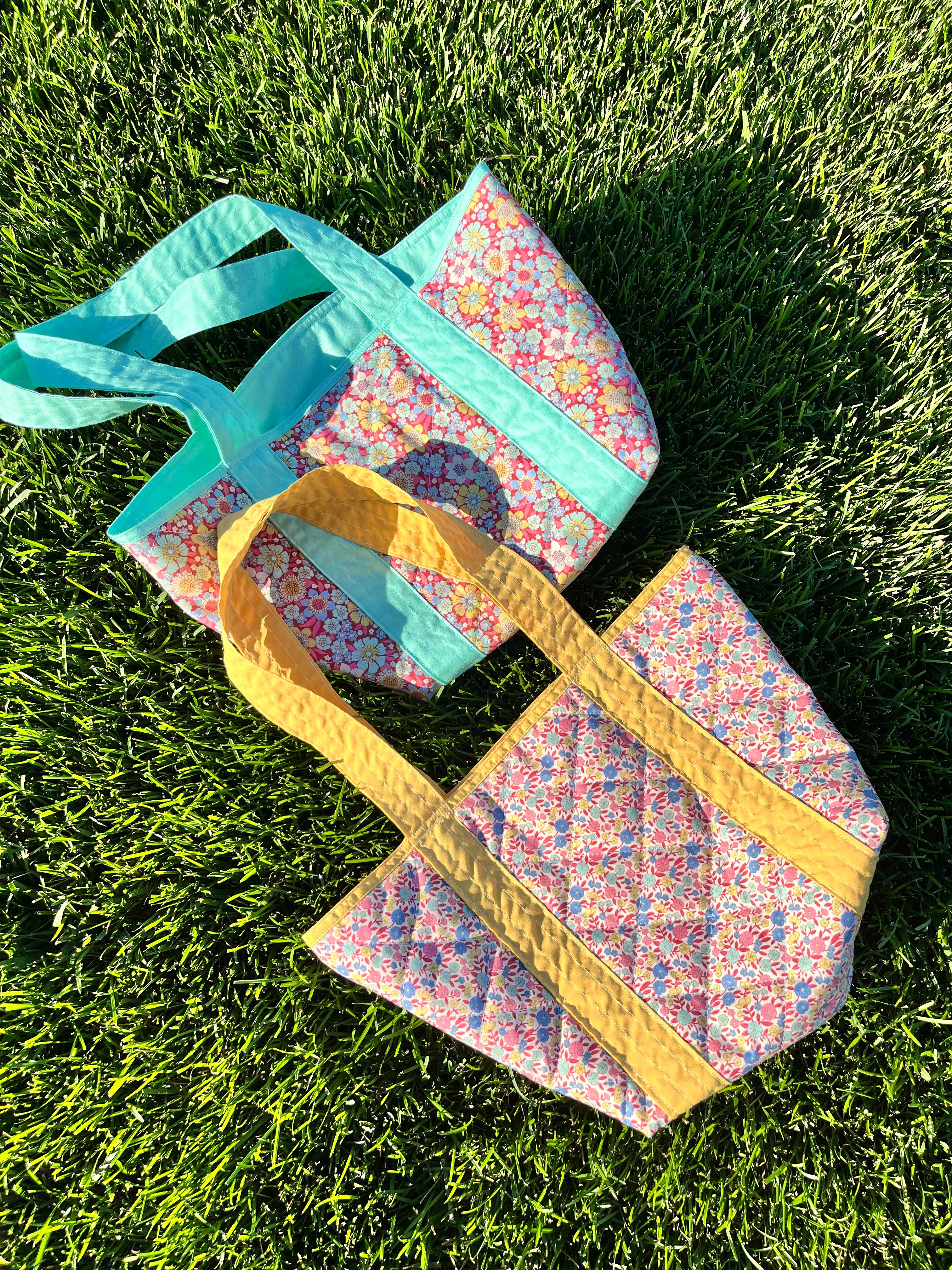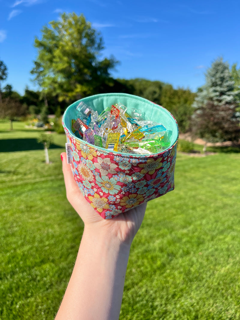 The Crimson Meadow Collection was inspired by the bright bold colors of summer and the need for a carry-all bag during farmers markets, festivals, and vacations. This collection featured 6 Tote Bags, 1 Kindle Sleeve, 2 Zipper Pouches, 2 Keychain Wallets, and 5 Fabric Bowls.