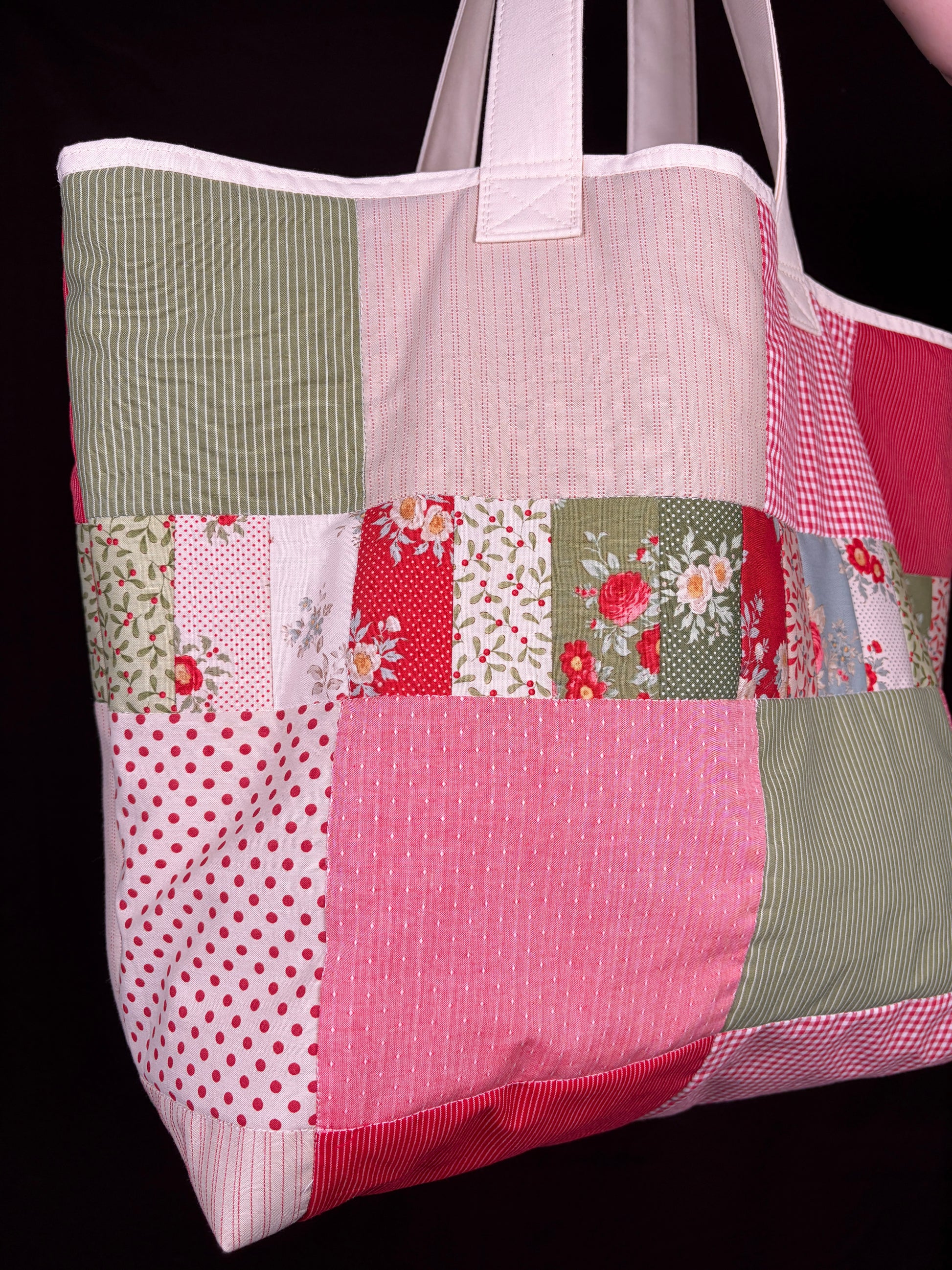 This one of a kind weekender tote bag is 100% handmade and is pieced together using limited edition fabrics from the Frosted Cottage Collection. This tote bag is the essential bag for any errand, workout, trip, and everything in between!