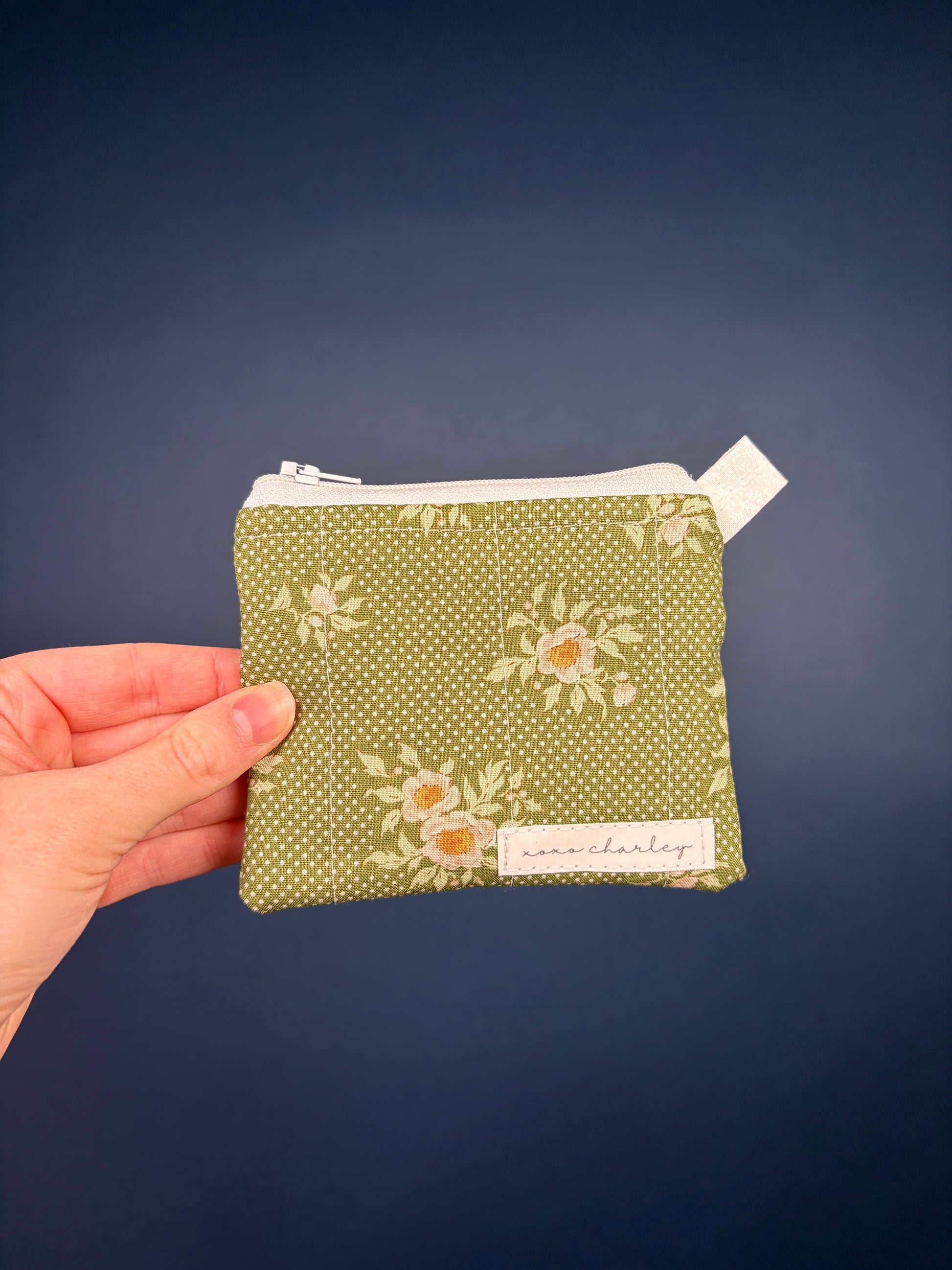 This pretty mini bag is 100% handmade and is perfect for holding your essentials in your large tote bag, a gift, or attaching to your wristlet for a night out or daily activities!
