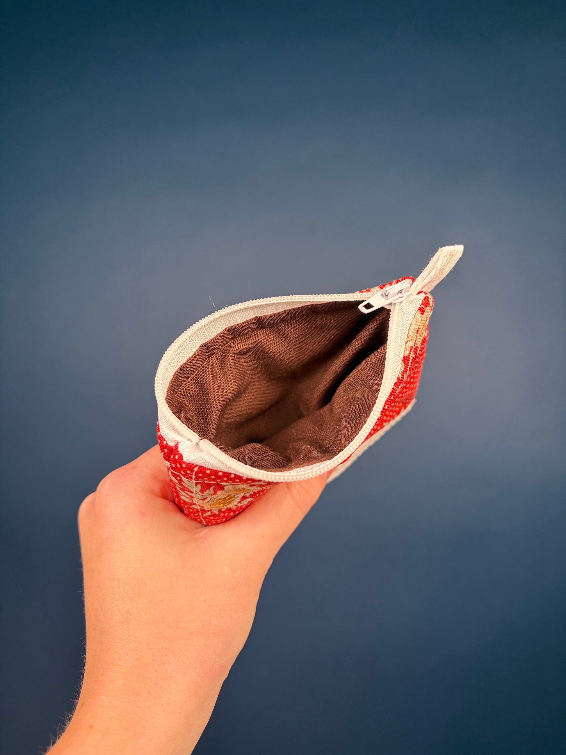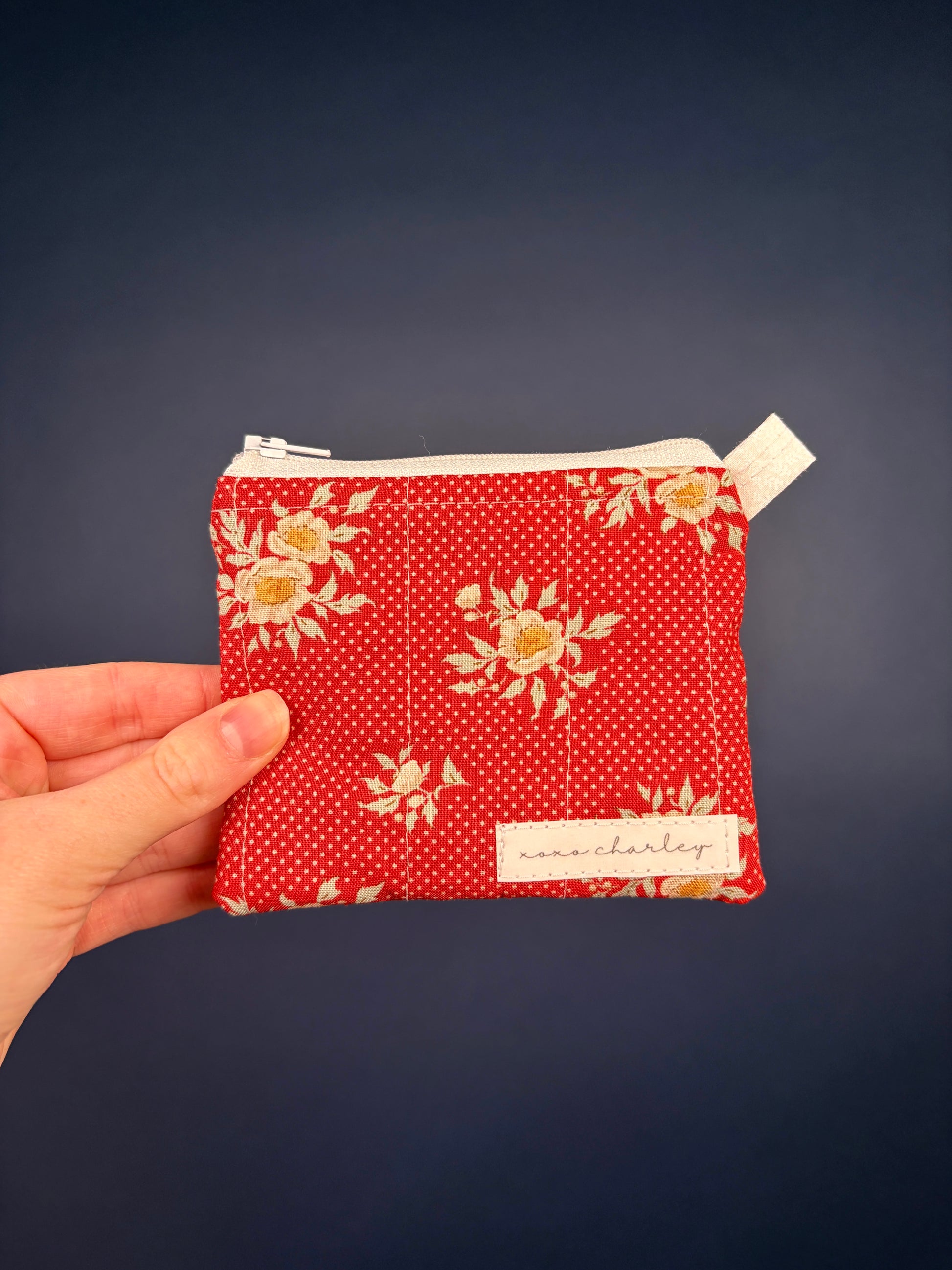 This pretty mini bag is 100% handmade and is perfect for holding your essentials in your large tote bag, a gift, or attaching to your wristlet for a night out or daily activities!