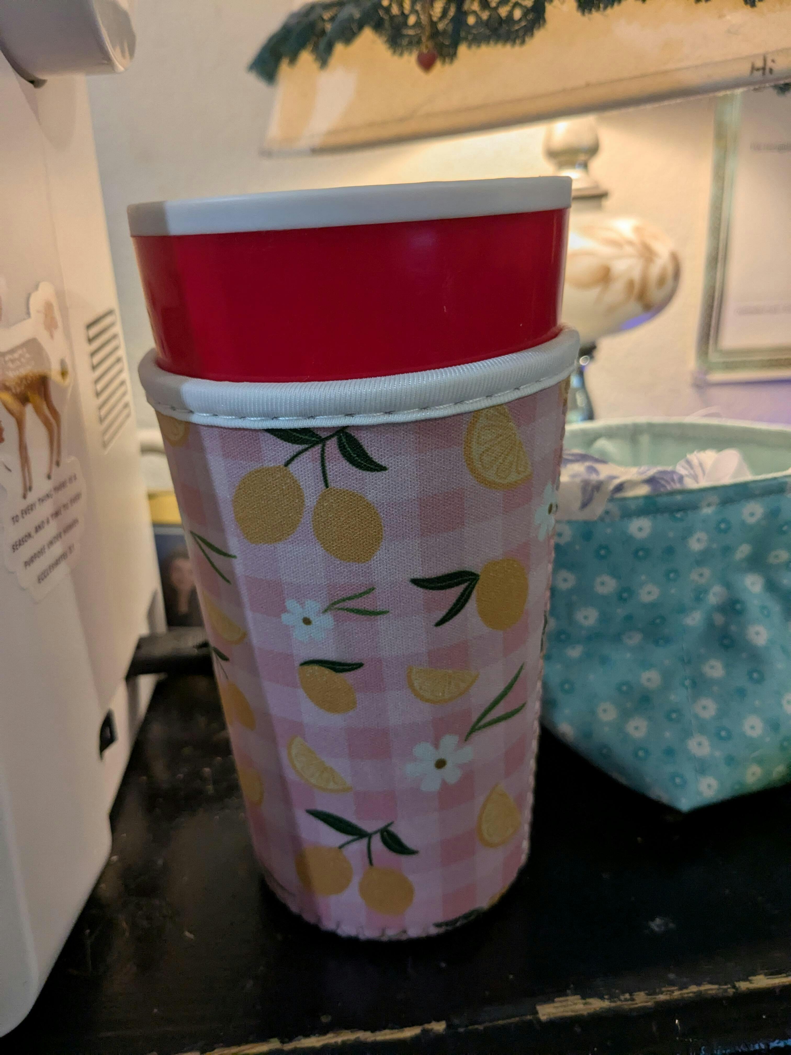 This cup coozie is the perfect accessory to your iced drinks to prevent sweaty cups!