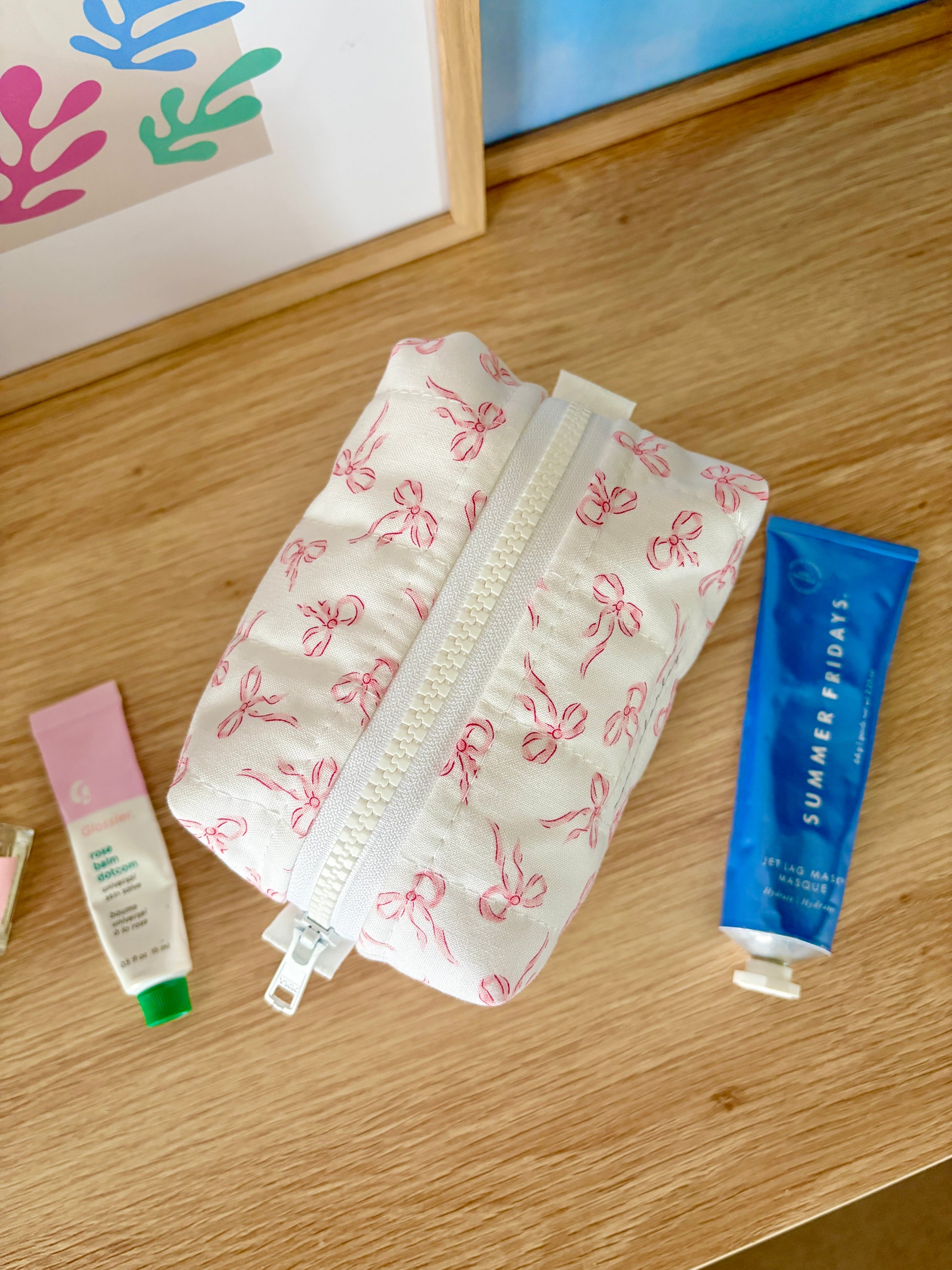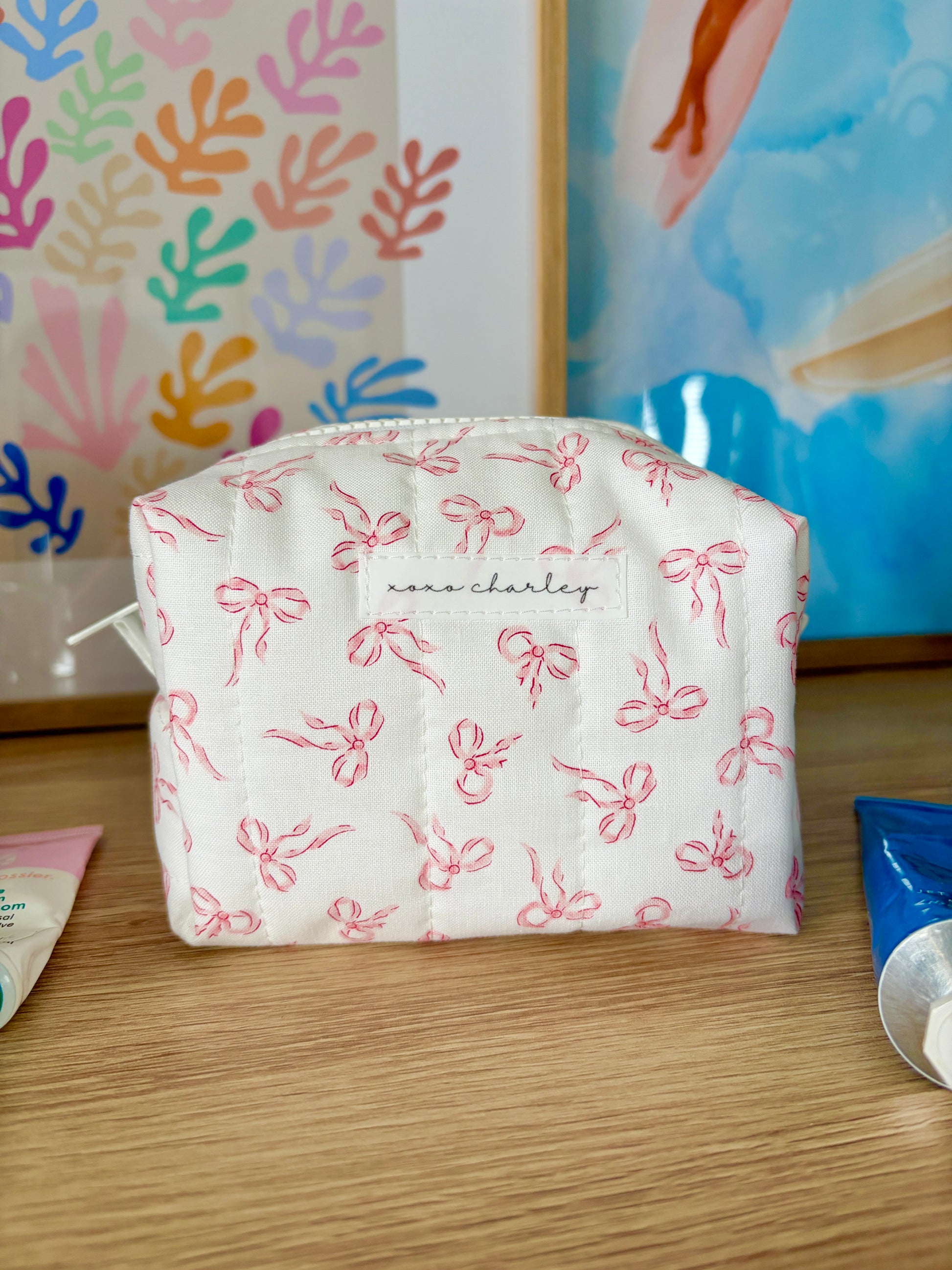 Our quilted mini makeup bags are designed to hold your makeup, cosmetics, hair care, and so much more! Each makeup bag is handmade by Xoxo Charley and is the perfect bag for your daily makeup bag, vacation, school bag, and more!