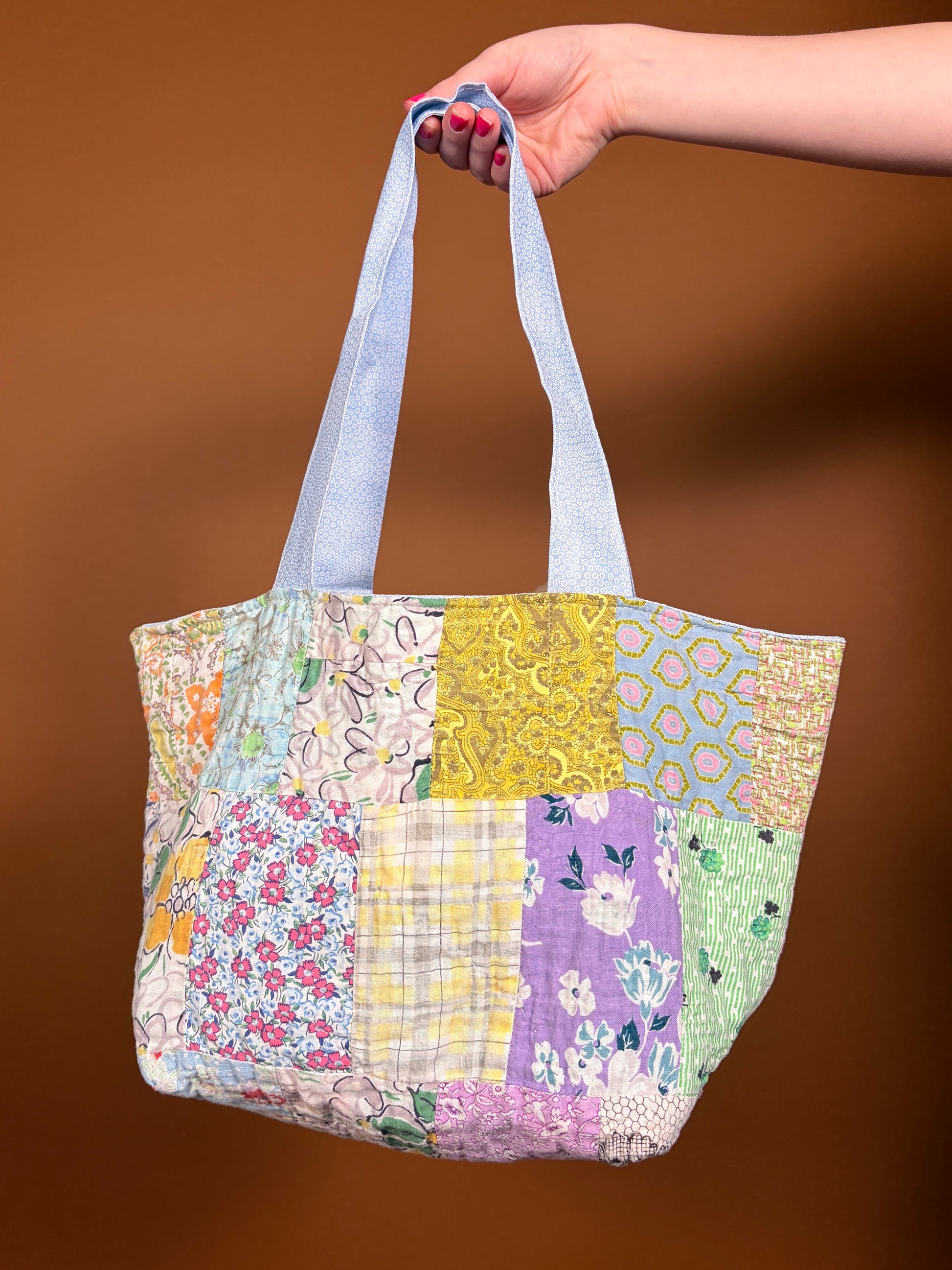 This handmade mini tote bag is the essential bag for any errand, workout, trip, and everything in between! This bag is upcycled from a vintage quilt.