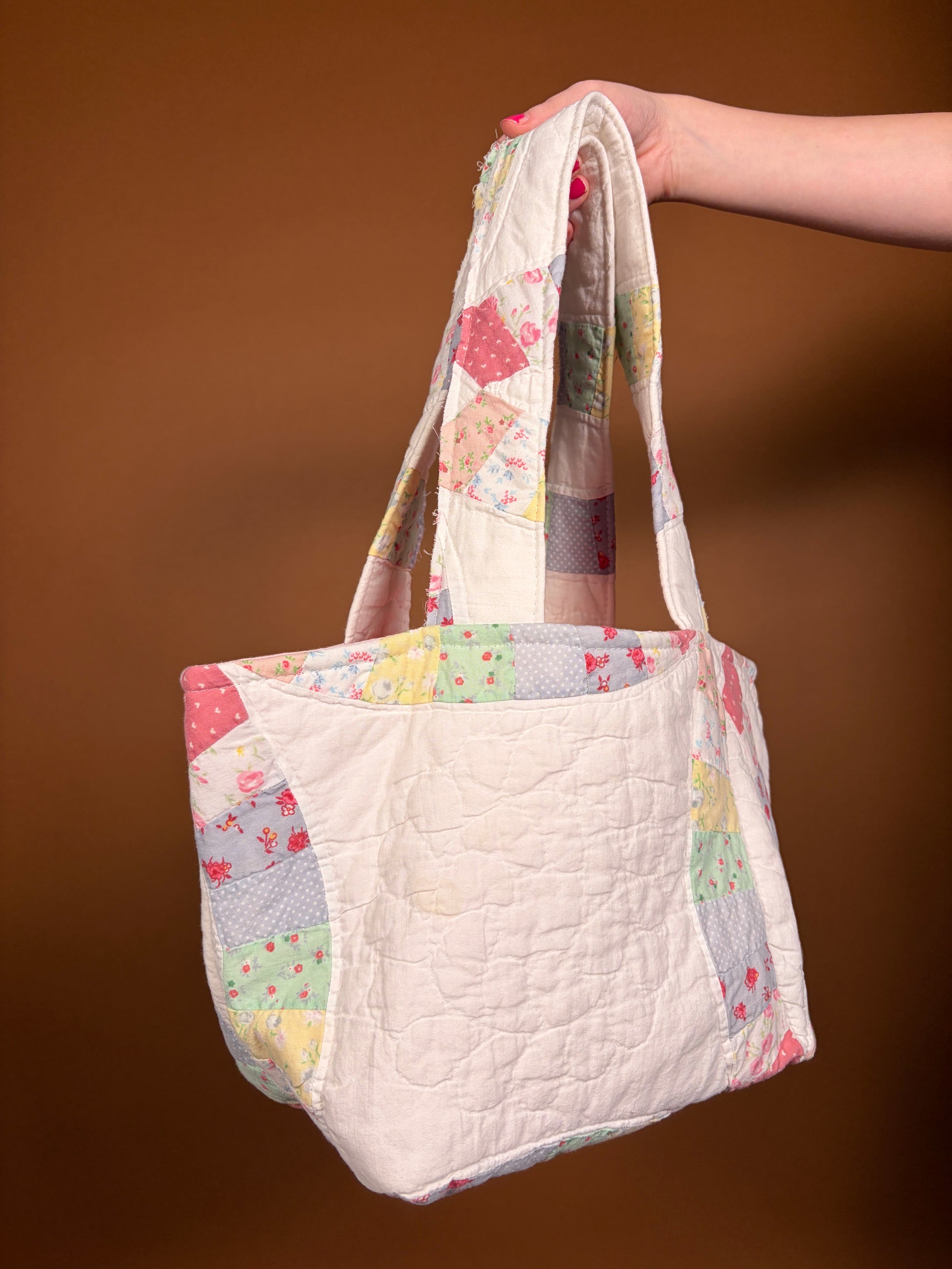 This handmade mini tote bag is the essential bag for any errand, workout, trip, and everything in between! This bag is upcycled from a vintage quilt.