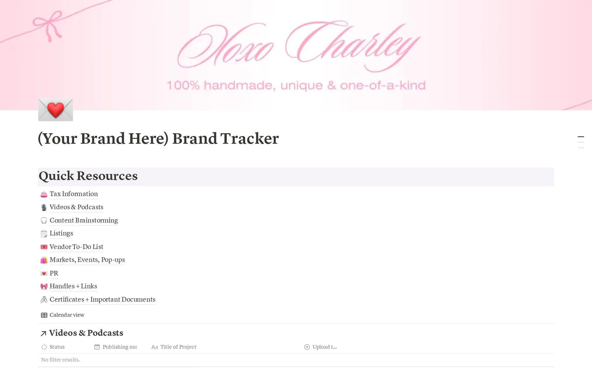 This Notion template is a digital download. This template is the perfect workspace to keep track of your small businesses brand identity, taxes, social media content, and so much more!