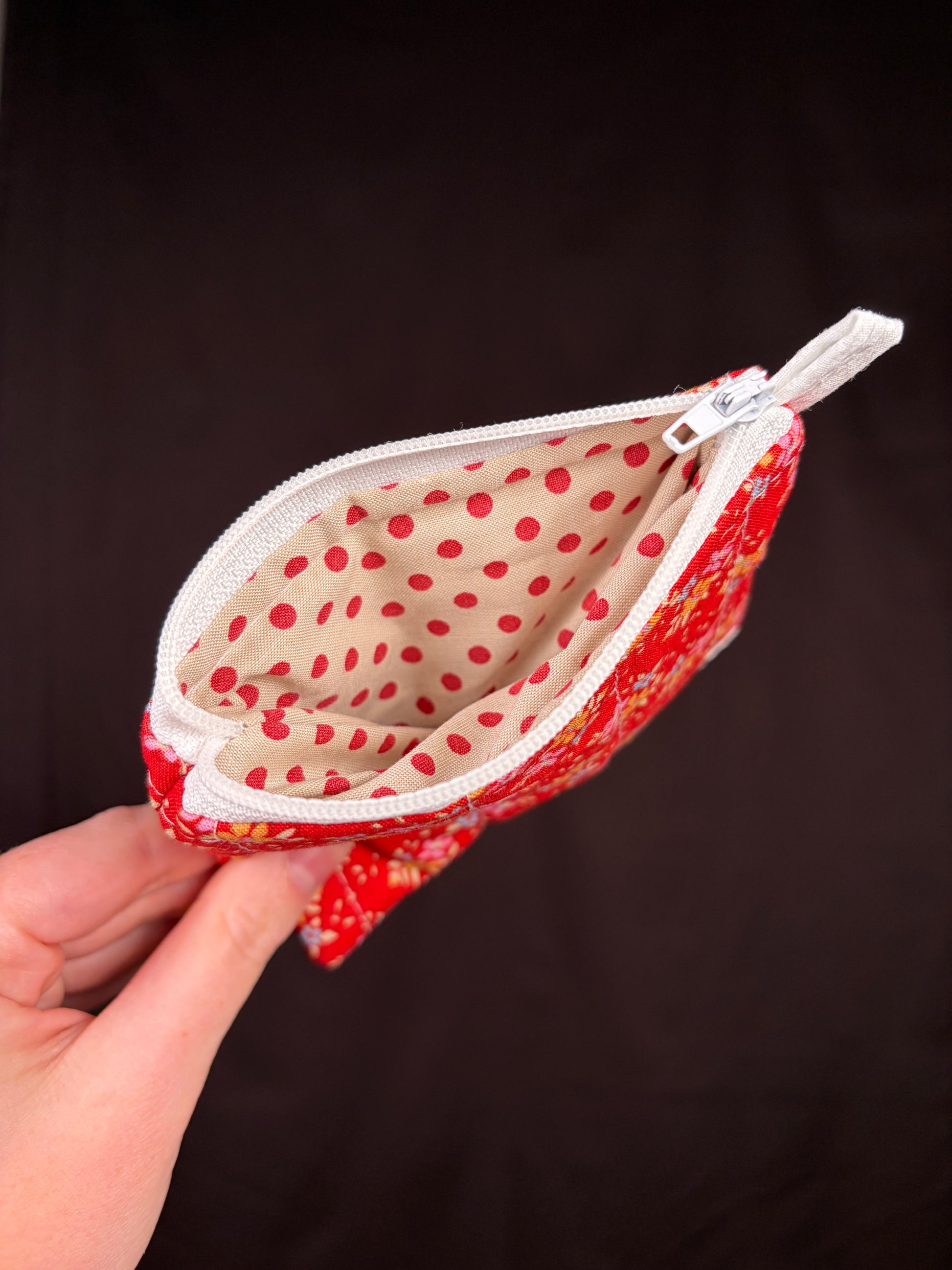 This pretty mini bag is 100% handmade and is perfect for holding your essentials in your large tote bag, a gift, or attaching to your wristlet for a night out or daily activities!