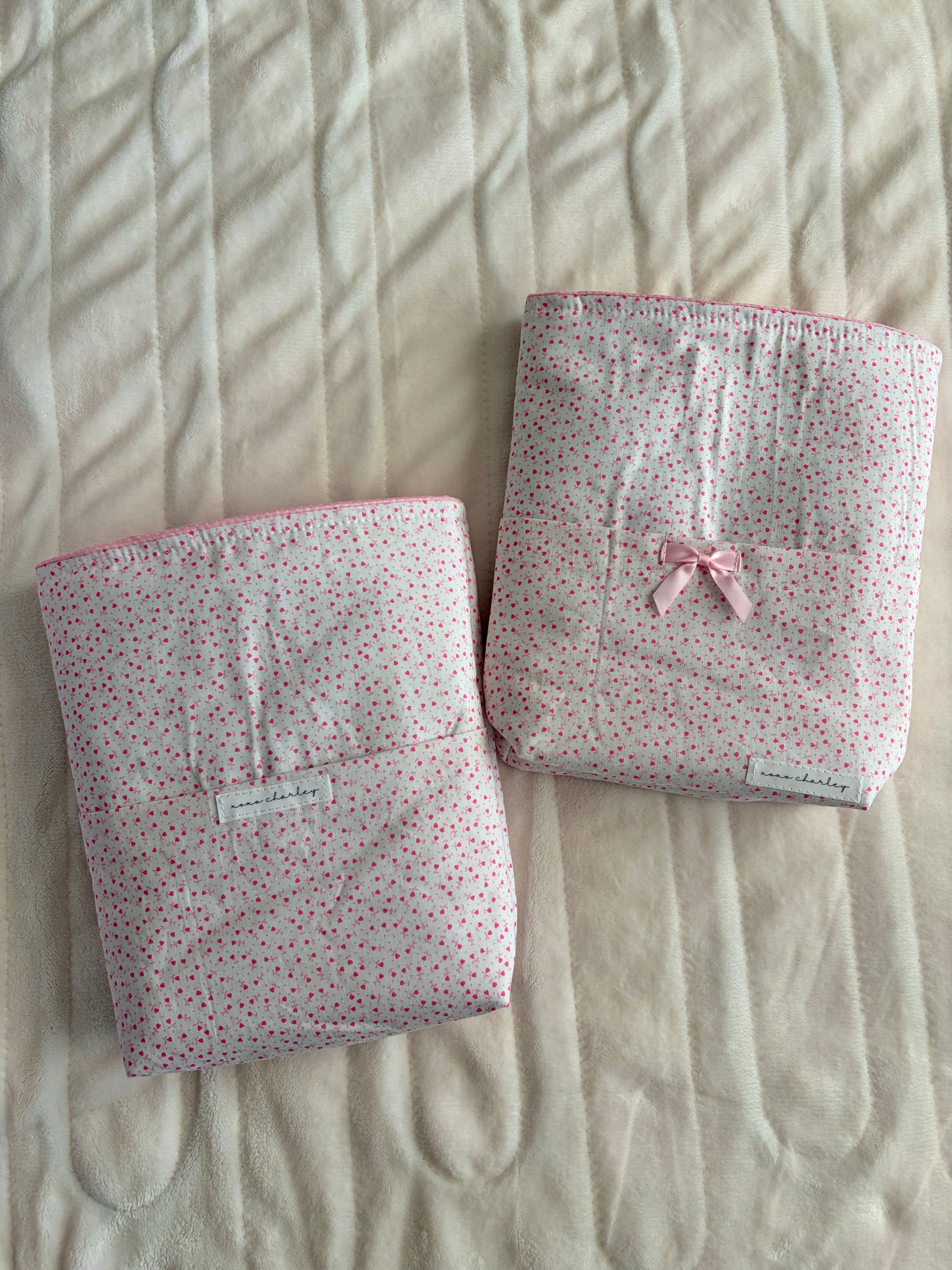 Choose from 26 patterns, makeup bags with bows, and the cutest fabric combos.