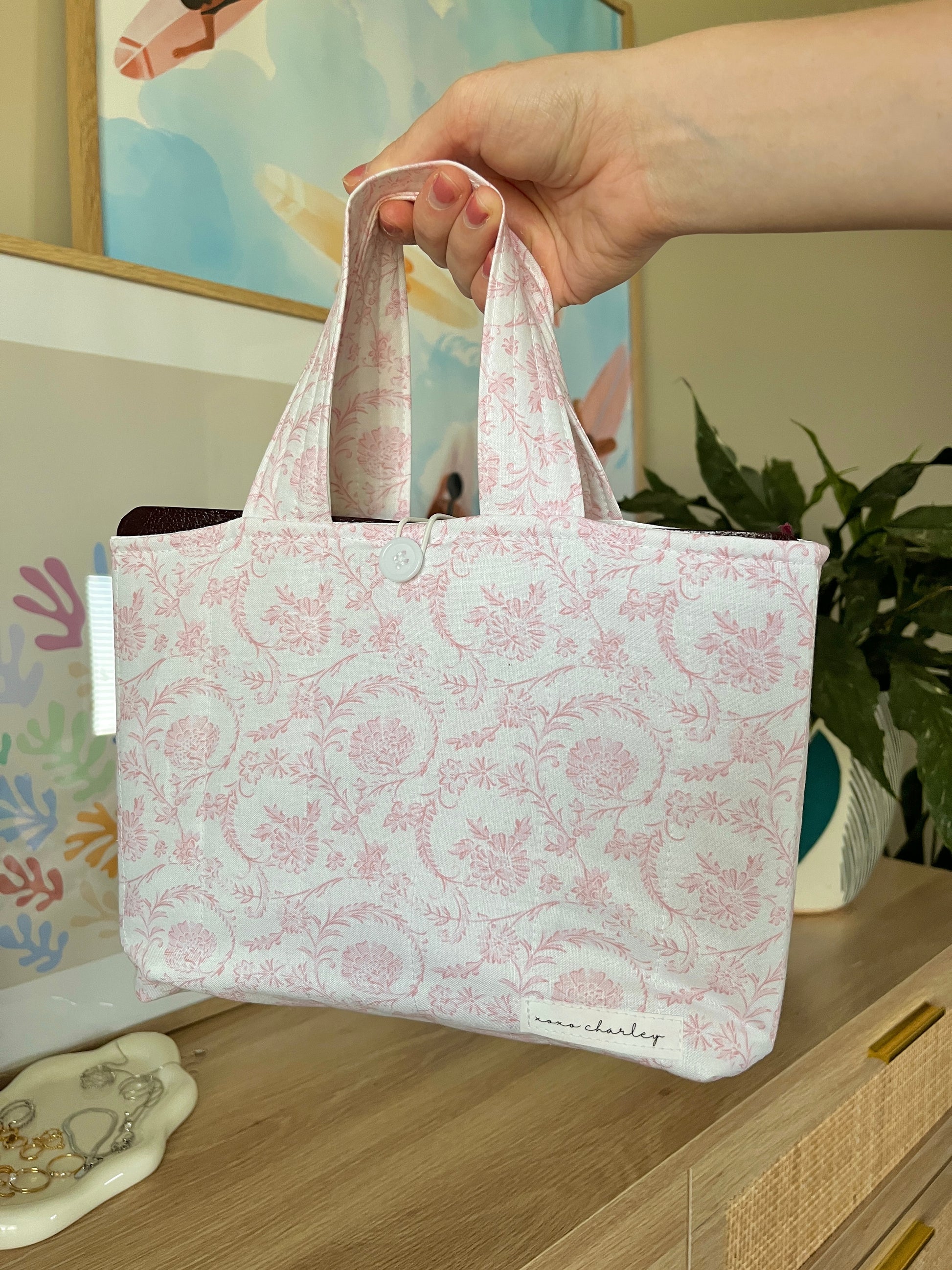 Customize your own Xoxo Charley tote bag from the fabric to the size to the quilting style. Customize your tote bag to your style or give a personal touch to a gift.