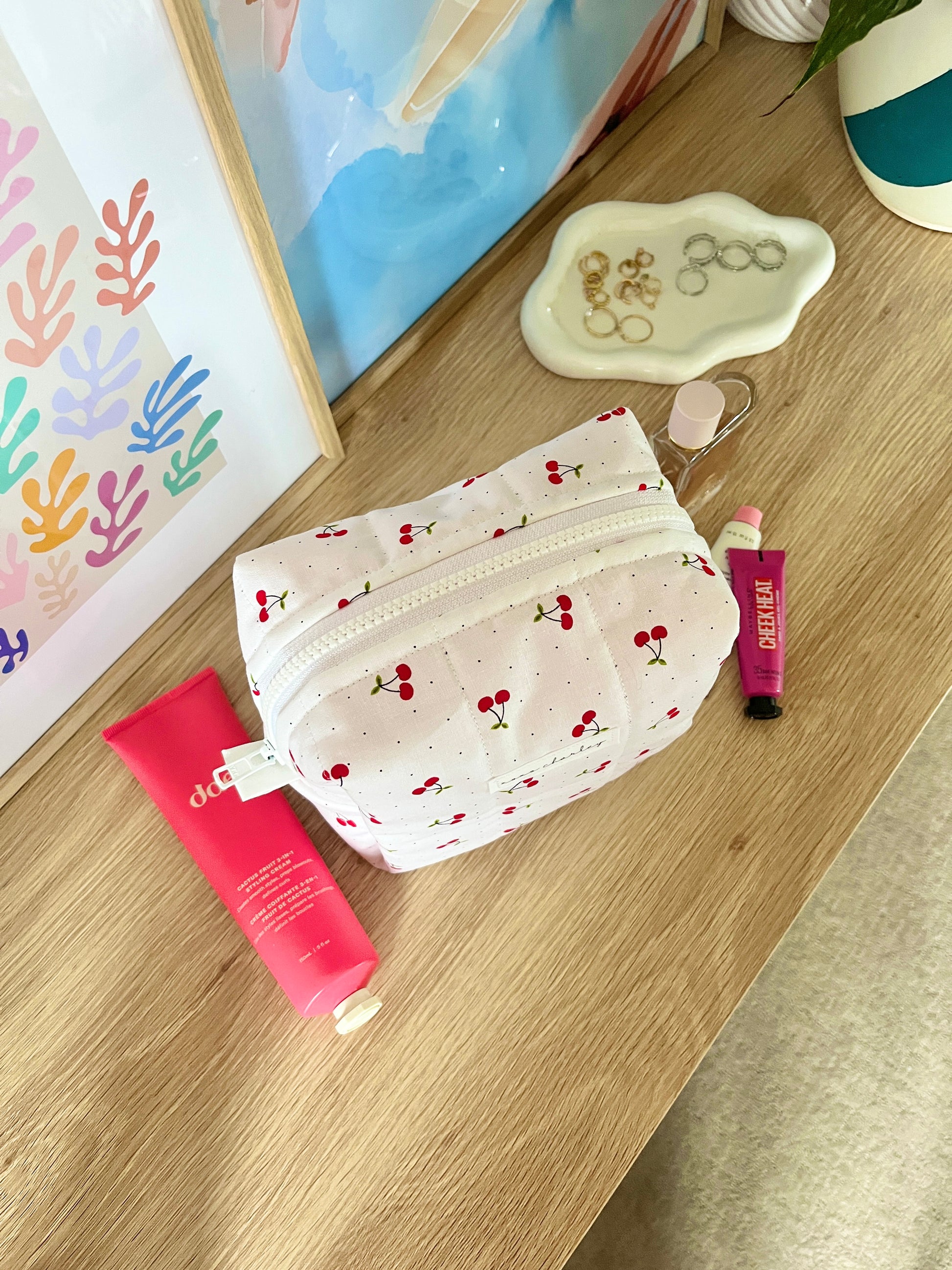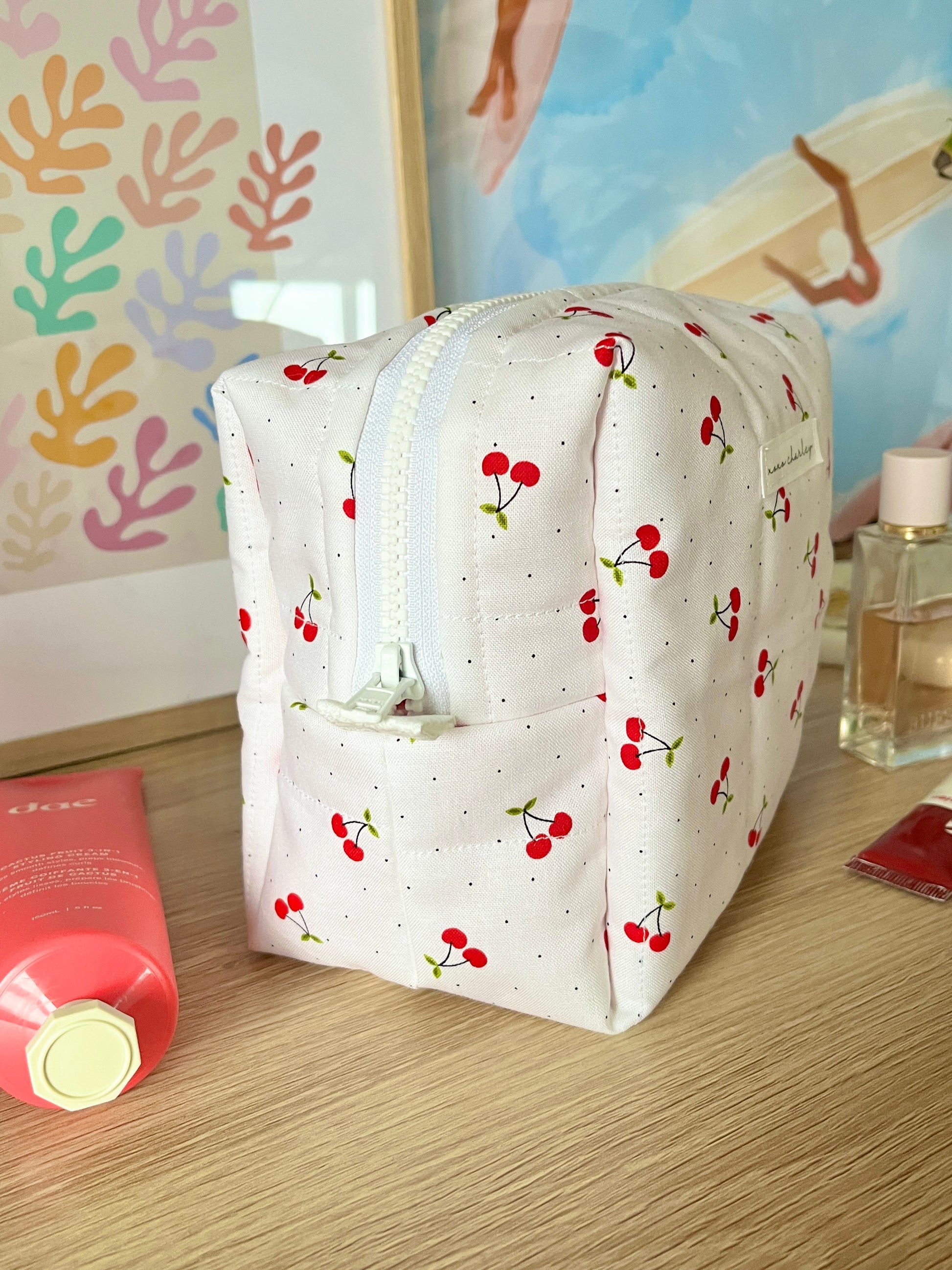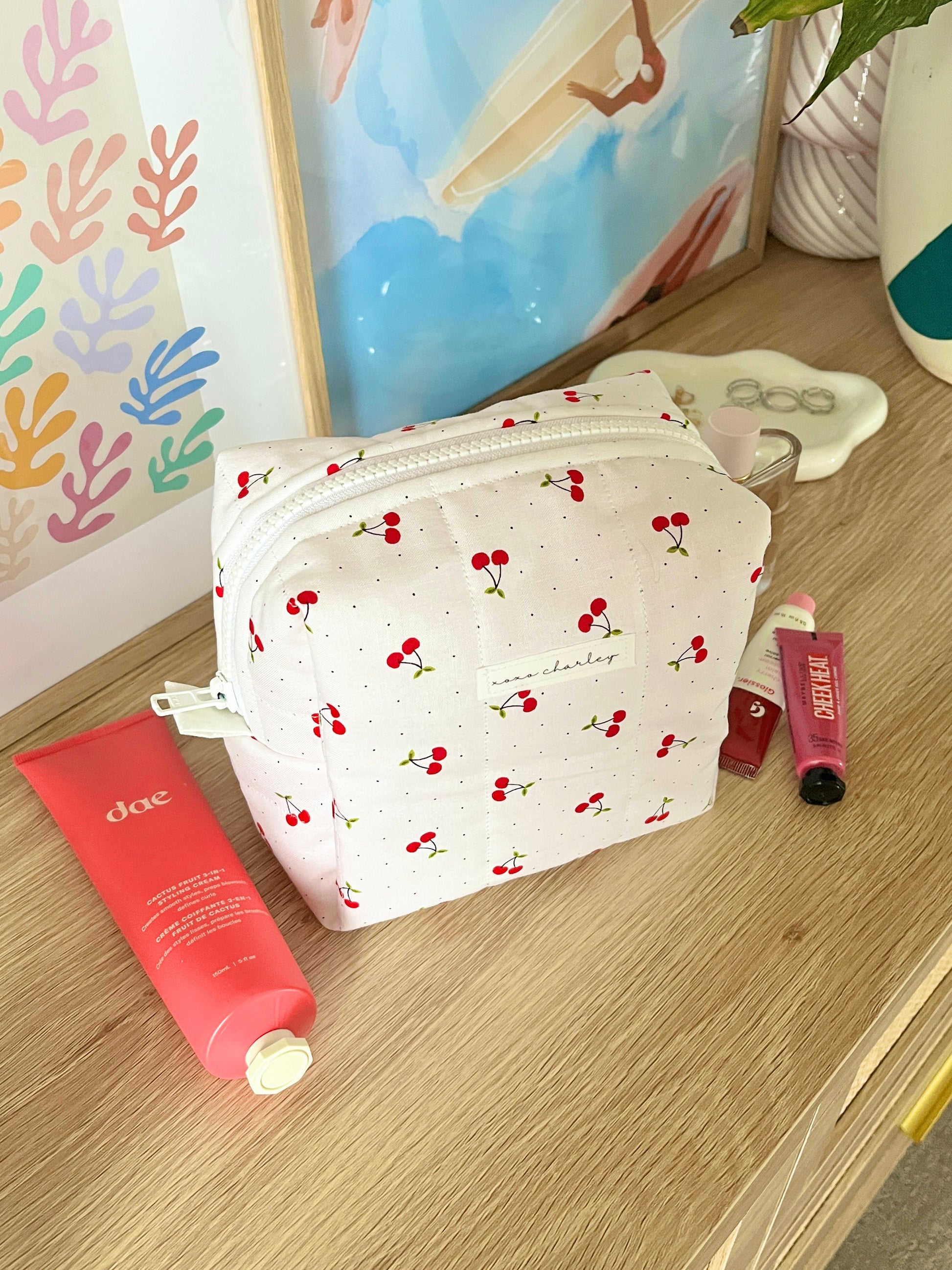 Our quilted makeup bags are designed to hold your makeup, cosmetics, hair care, and so much more! Each makeup bag is 100% handmade and an essential for your vanity, bag, and vacation!