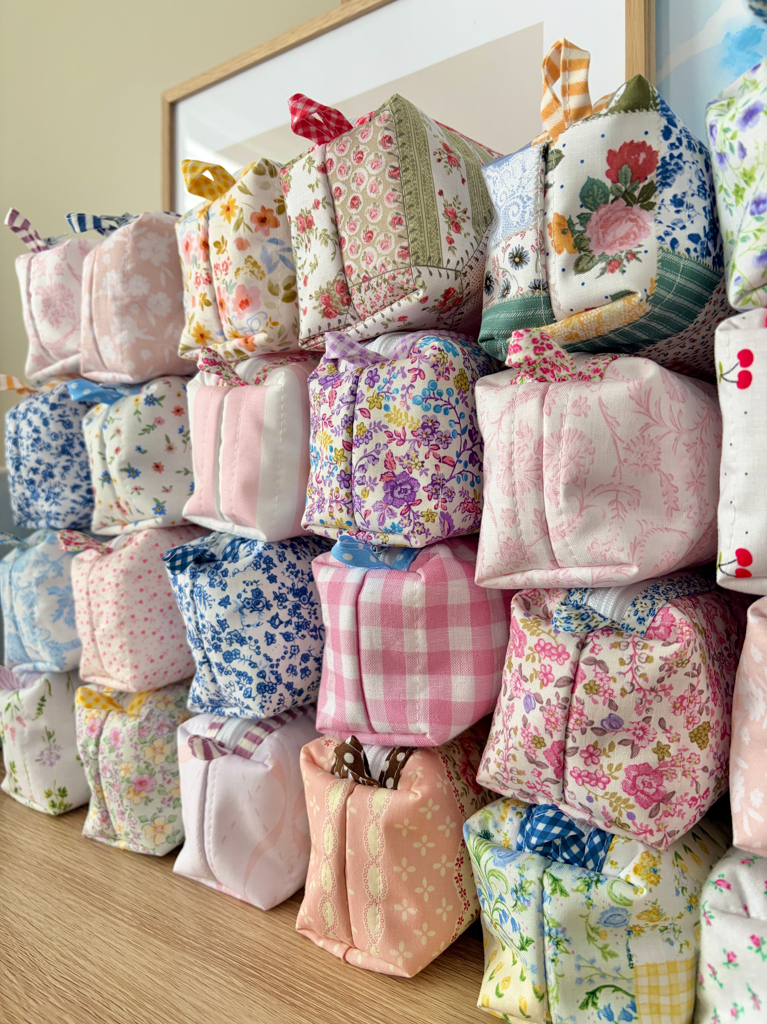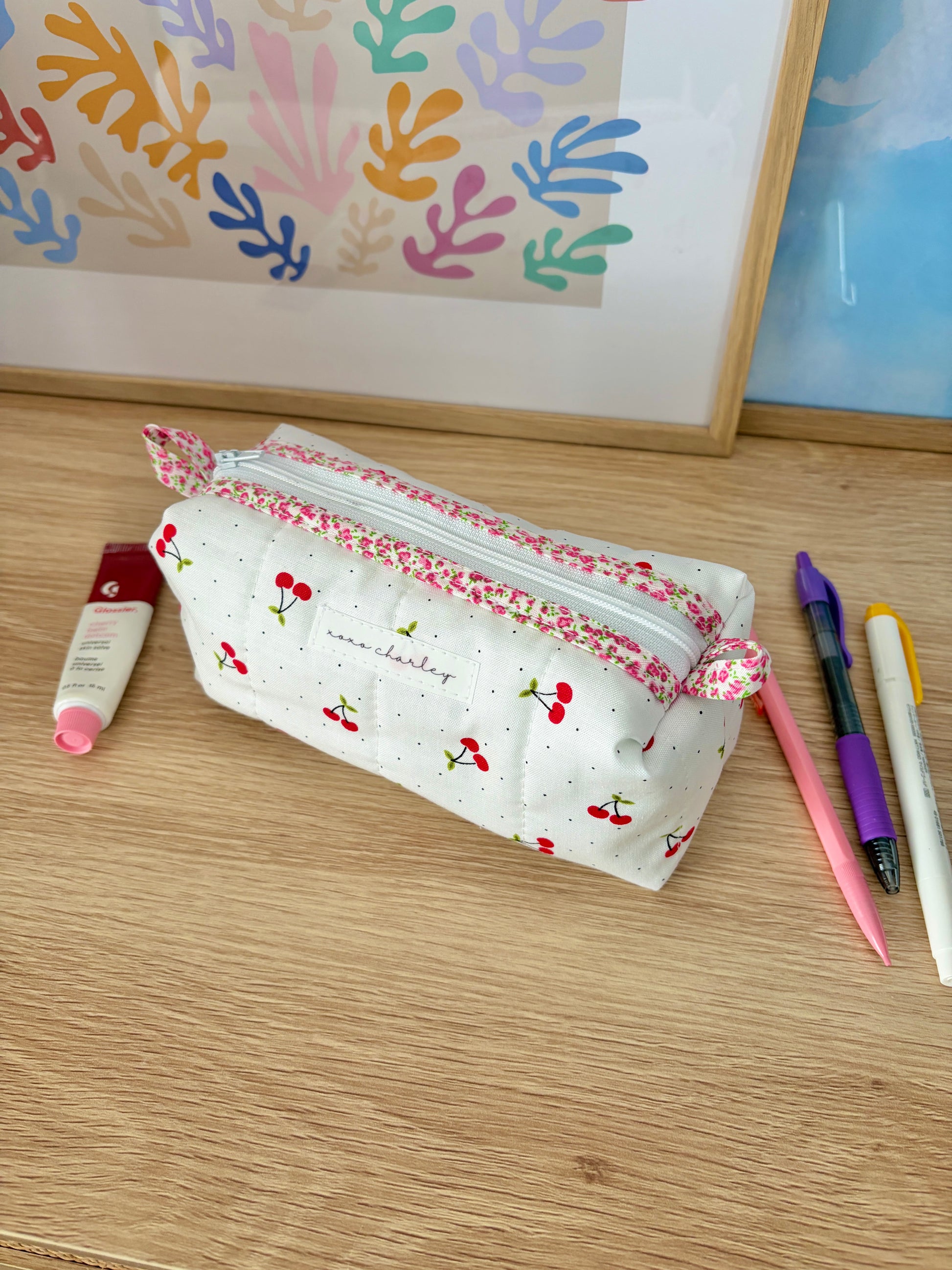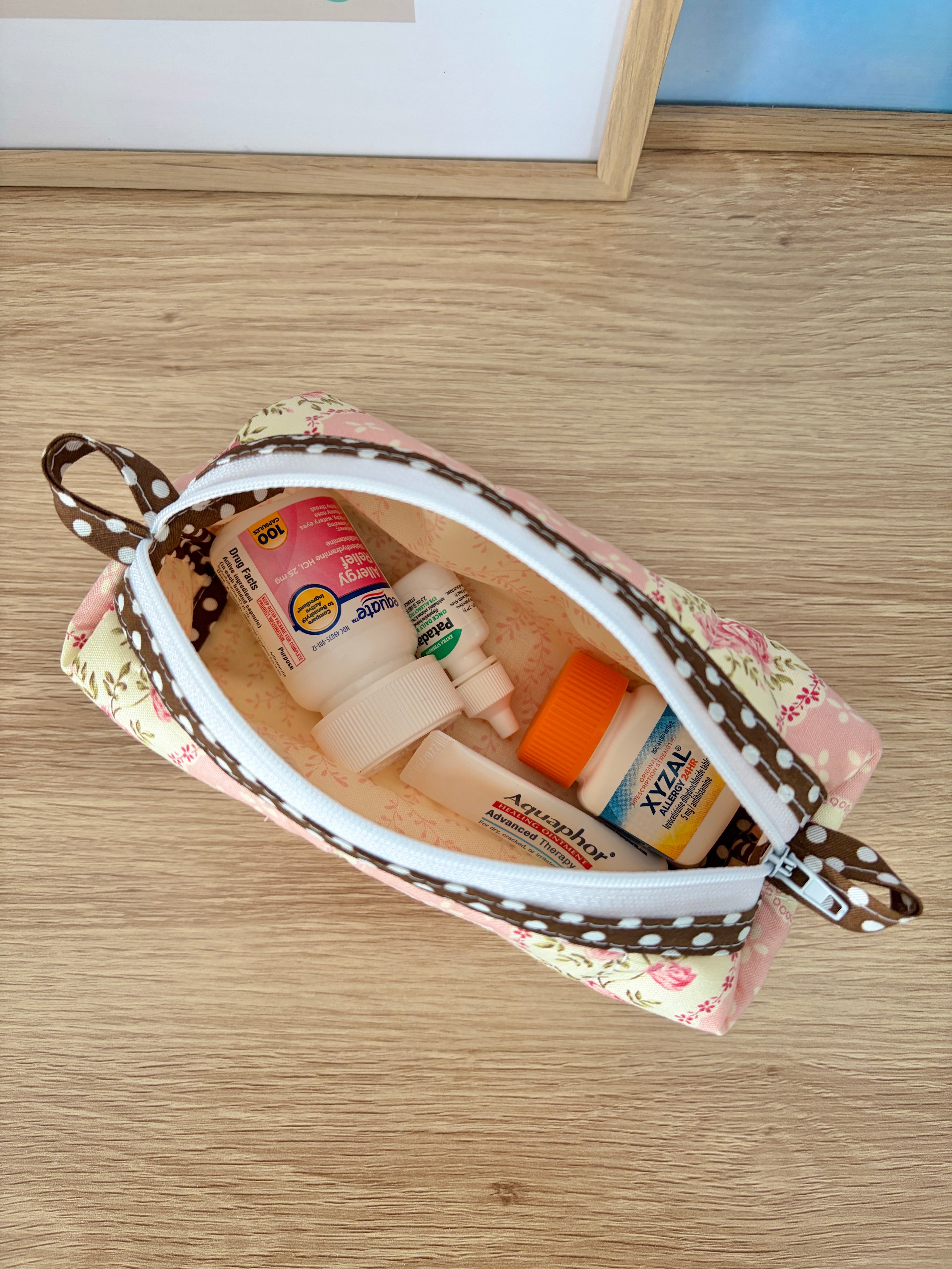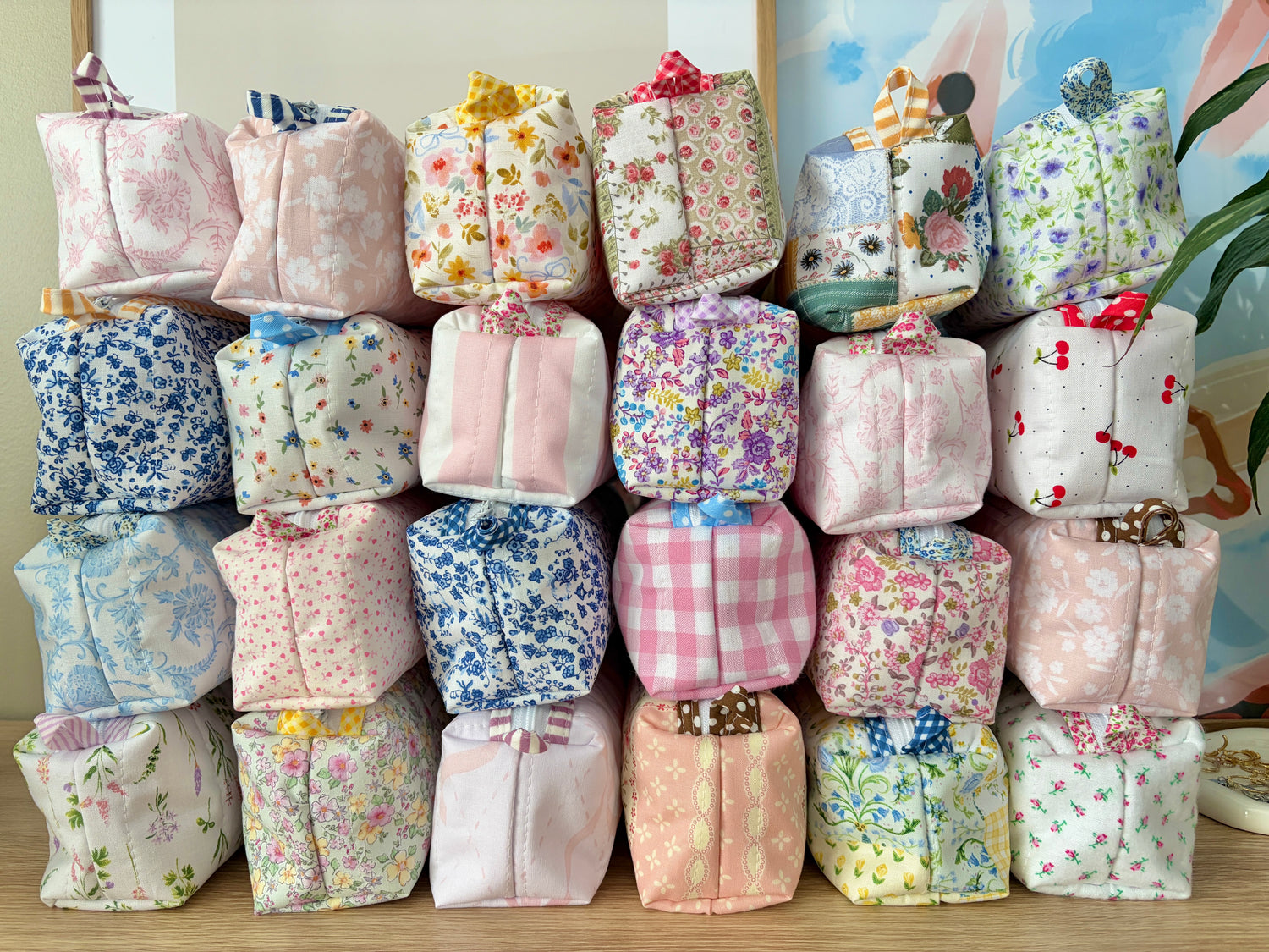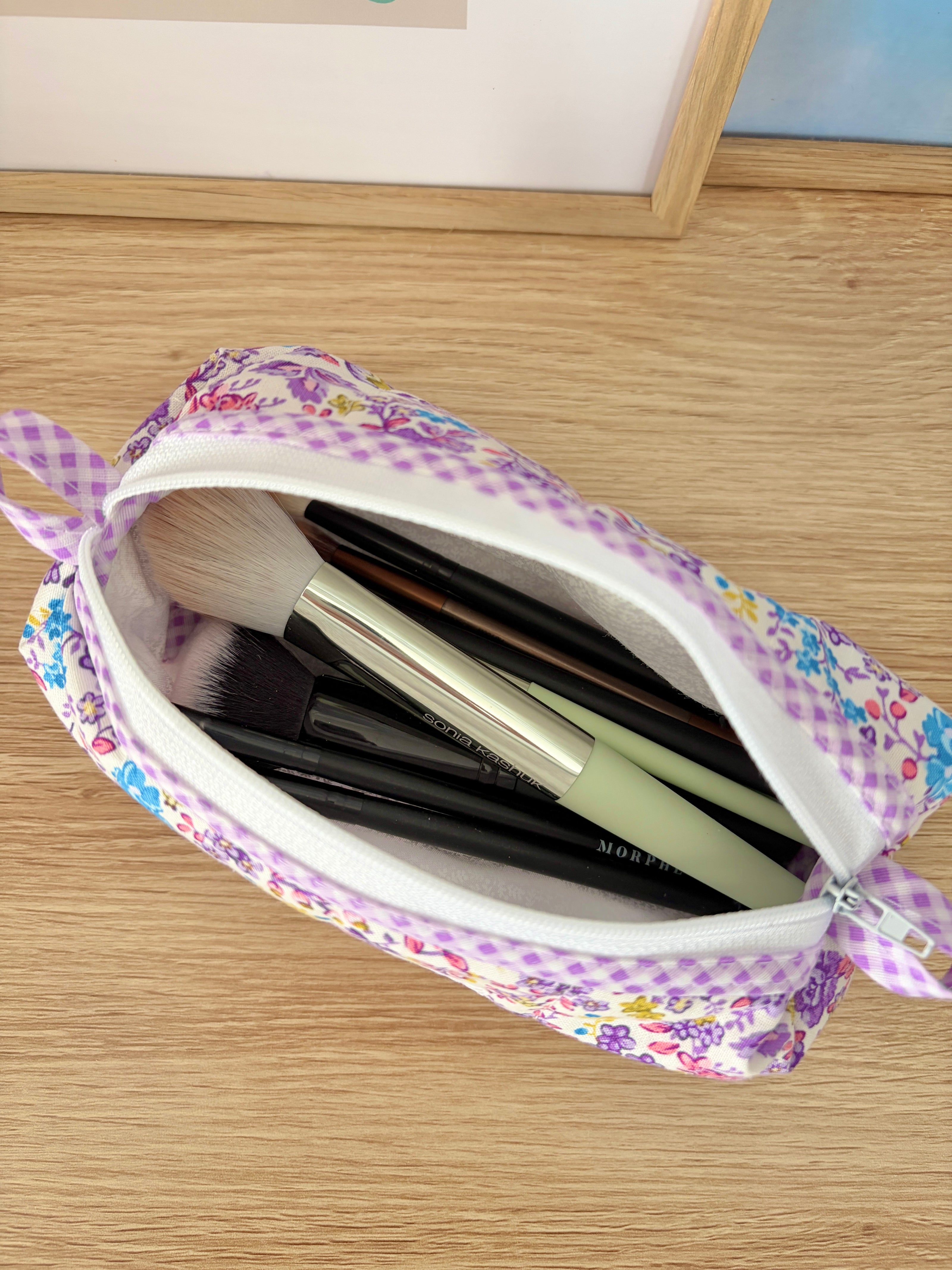 This pretty colorblock bag is handmade and perfect for storing and organizing your small essentials.