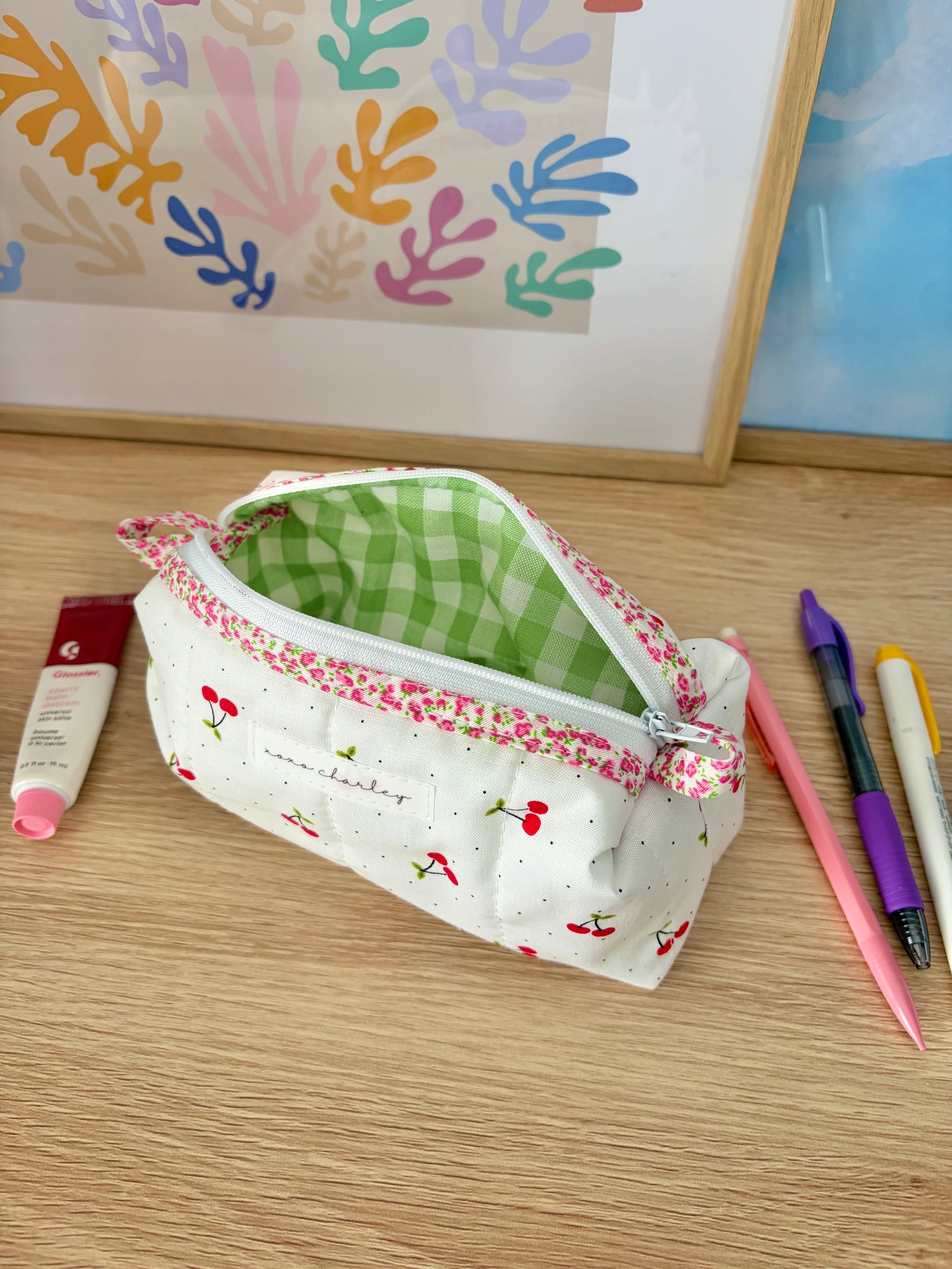 The Cherry Red Colorblock Bag - Pink Floral/Green Gingham