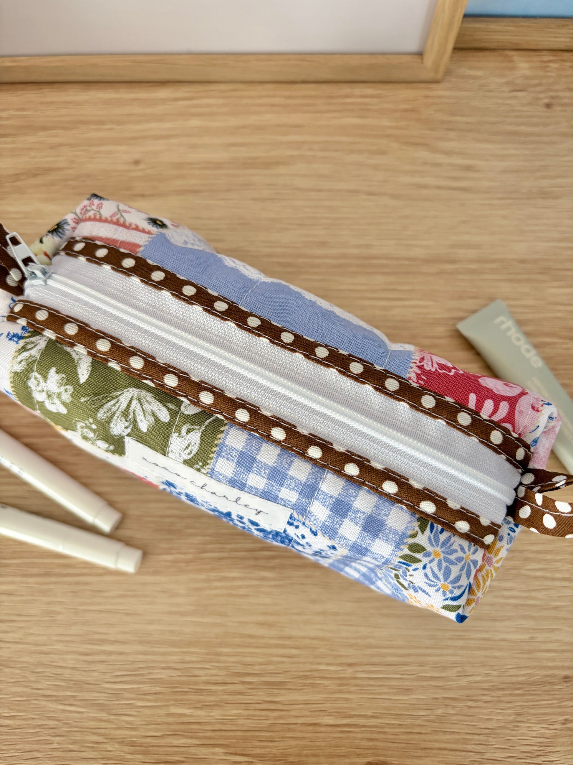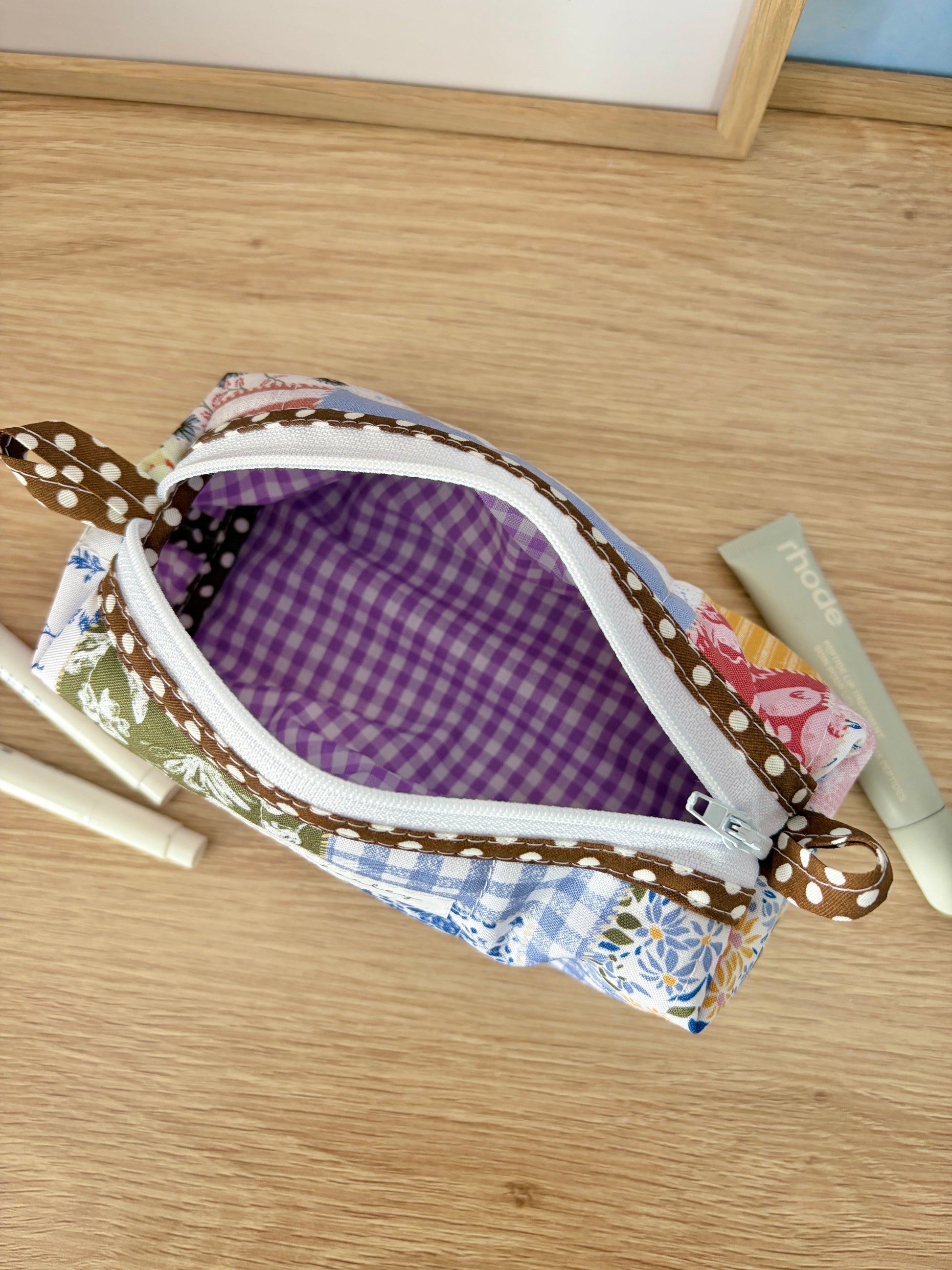This pretty colorblock bag is handmade and perfect for storing and organizing your small essentials.