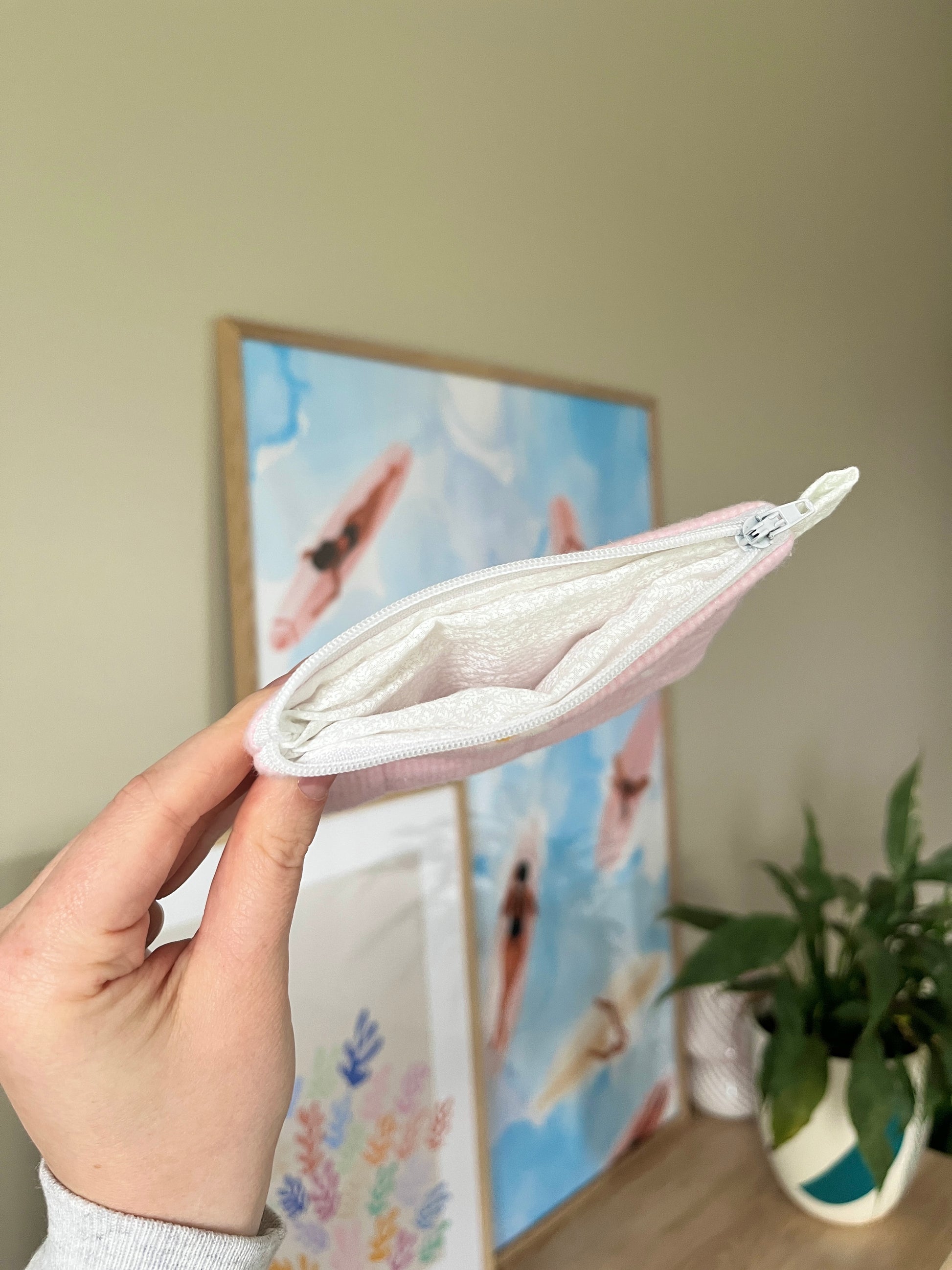 This limited-edition, pretty, and mini bag is 100% handmade and is perfect for holding your essentials in your large tote bag, staying pretty on the vanity, or attaching to your wristlet for a night out or daily activities! Shop the matching wristlets!