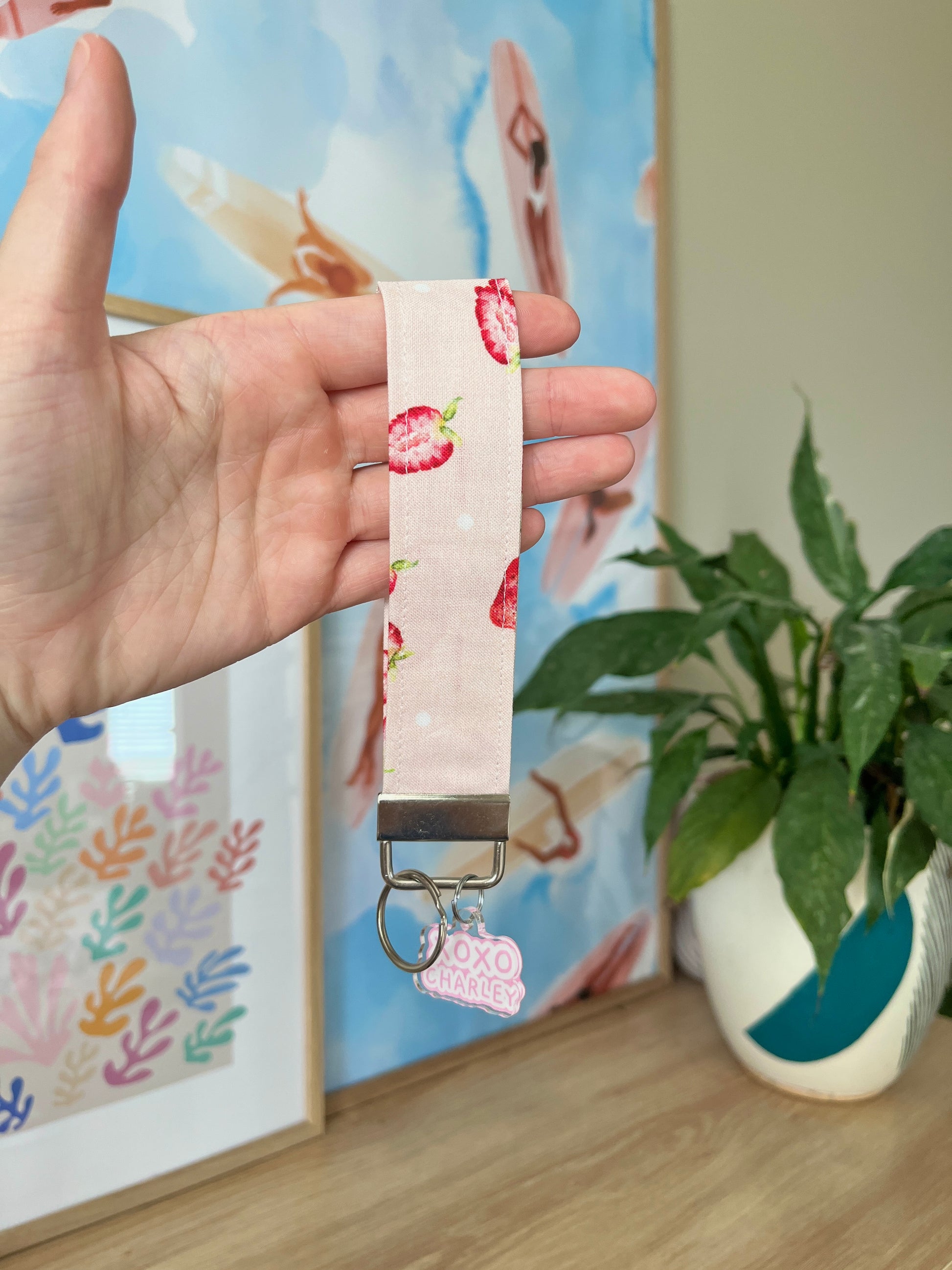 This pretty wristlet is 100% handmade and is perfect for holding your keys, wallet, and other essentials during your daily activities! Wallets not included and are sold separately.