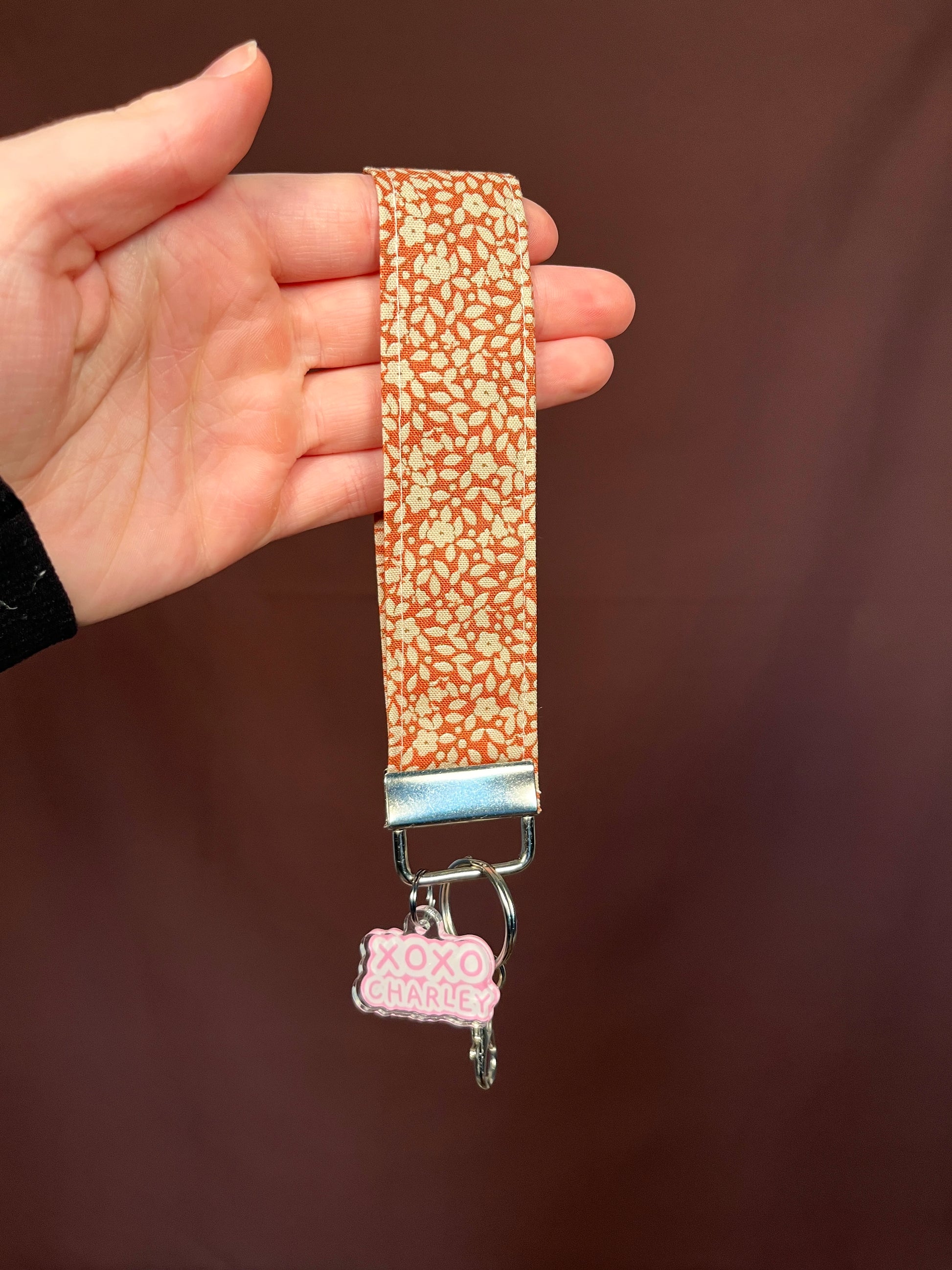 This pretty wristlet is 100% handmade and perfect for holding your keys, wallet, and other essentials during your daily activities!