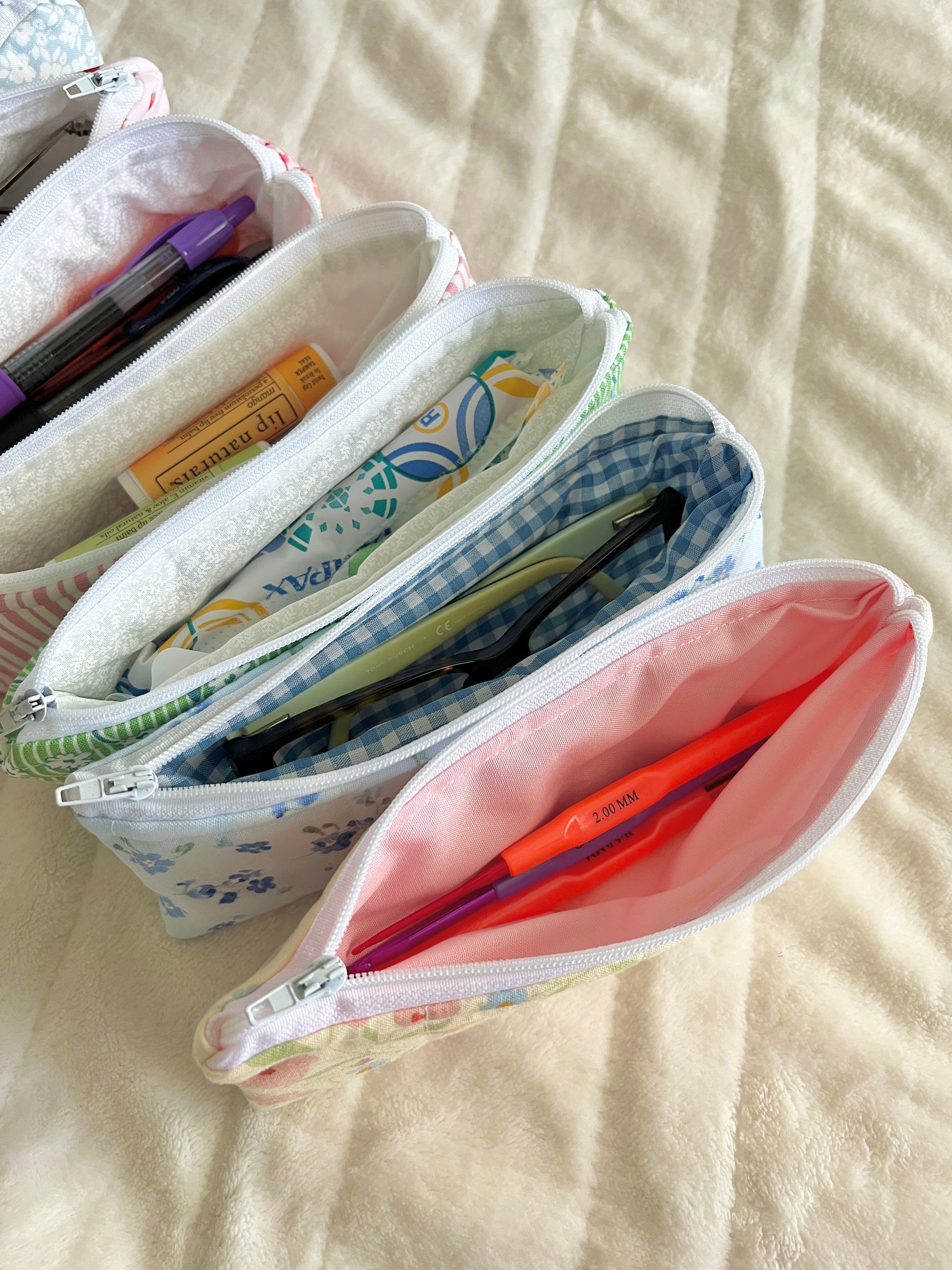 Choose from 26 patterns, makeup bags with bows, and the cutest fabric combos.