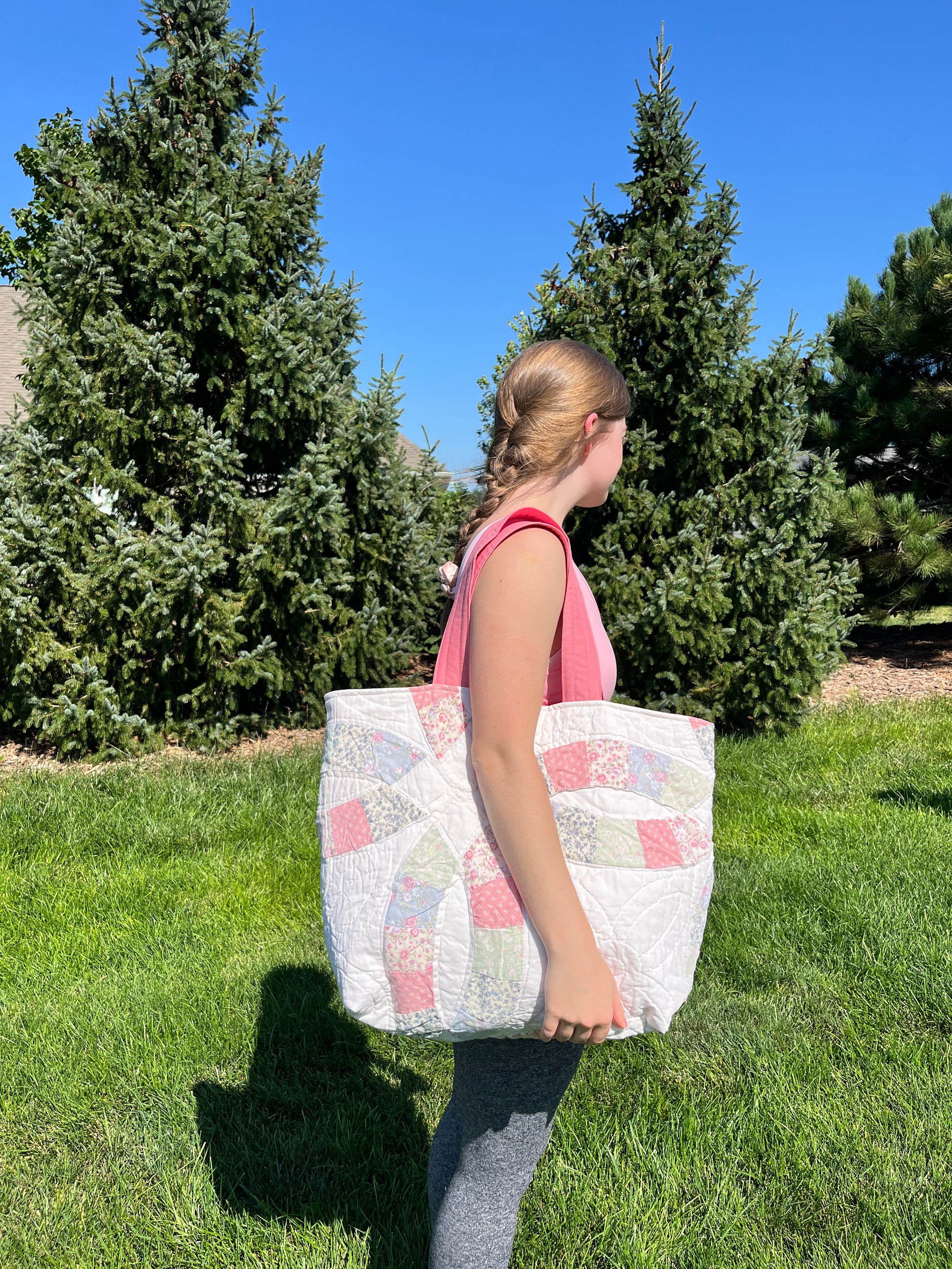 This one of a kind weekender tote bag is 100% handmade and is upcycled from a unique quilt. This tote bag is the essential bag for any errand, workout, trip, and everything in between!