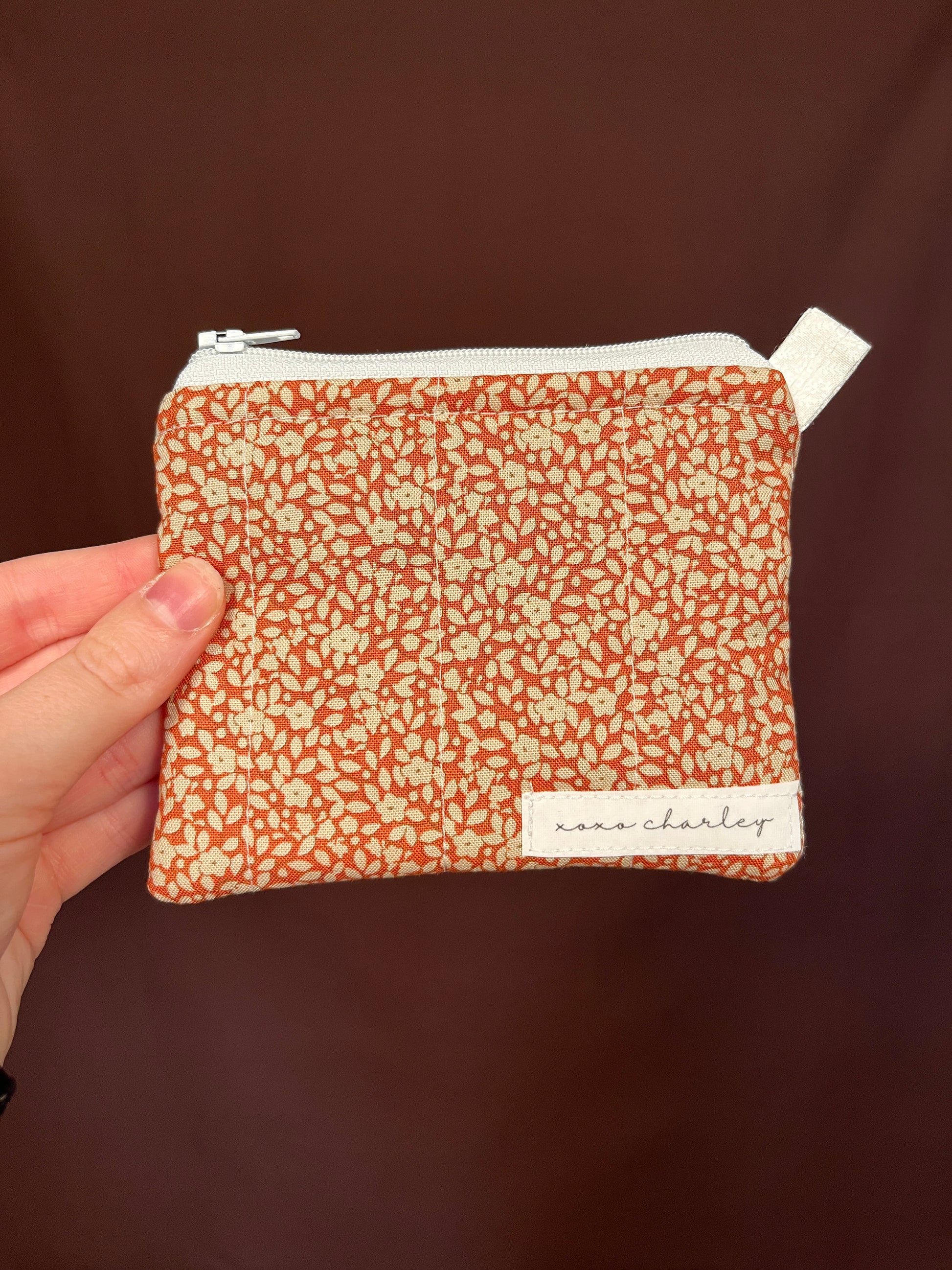 This pretty mini bag is 100% handmade and is perfect for holding your essentials in your large tote bag, a gift, or attaching to your wristlet for a night out or daily activities!