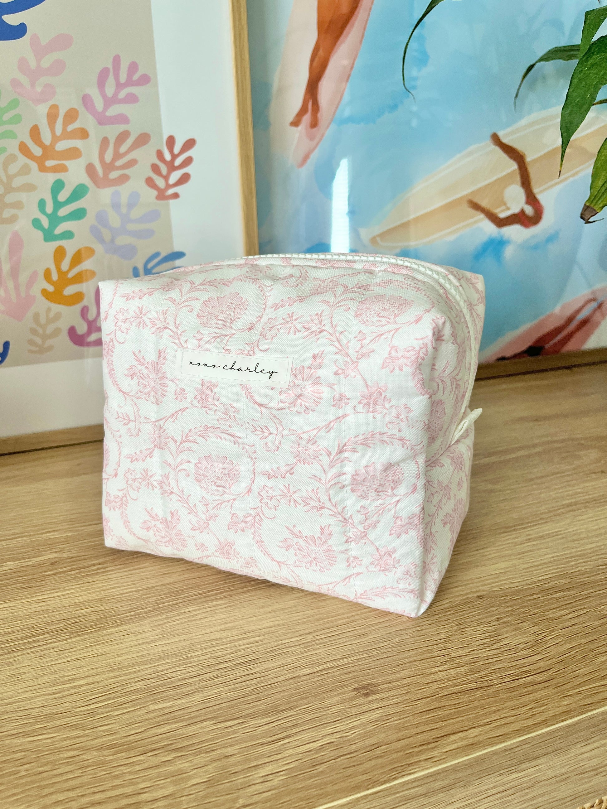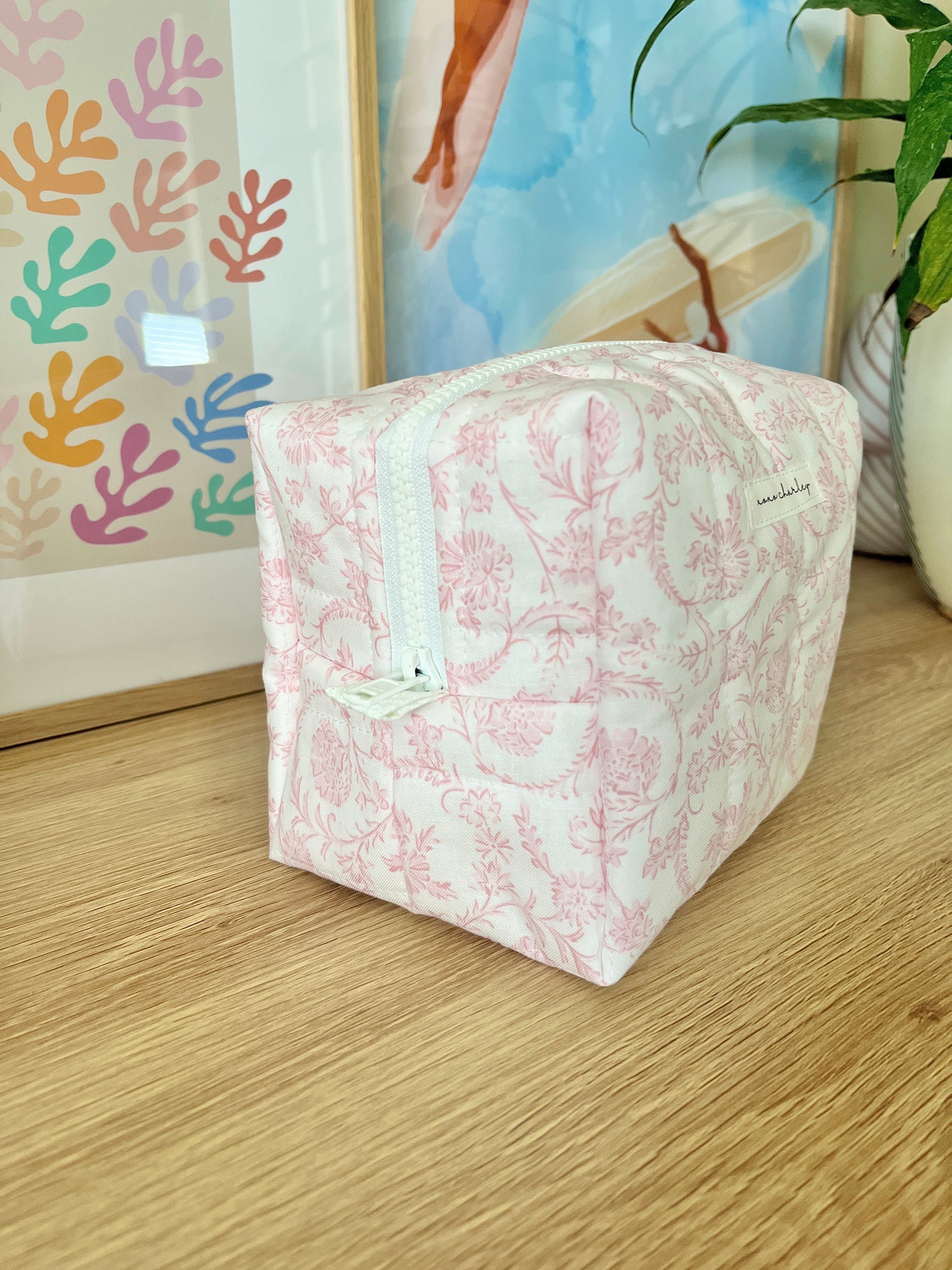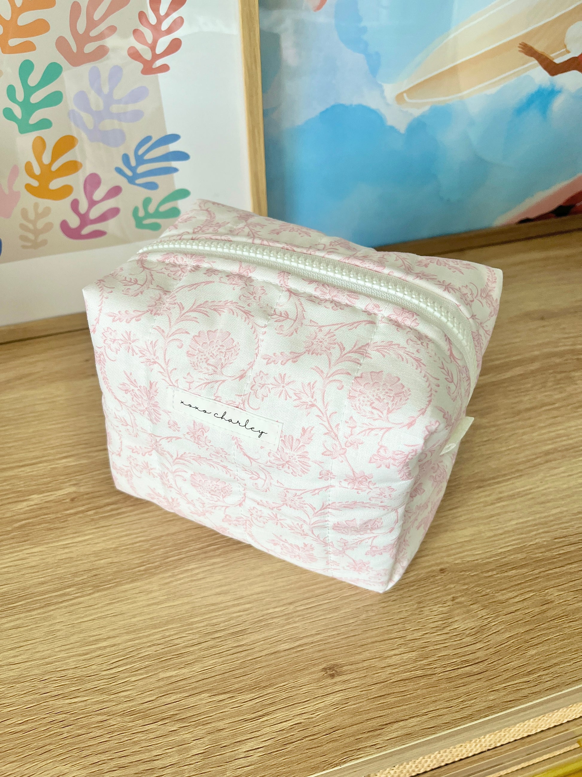 Our quilted makeup bags are designed to hold your makeup, cosmetics, hair care, and so much more! Each makeup bag is 100% handmade and an essential for your vanity, bag, and vacation!