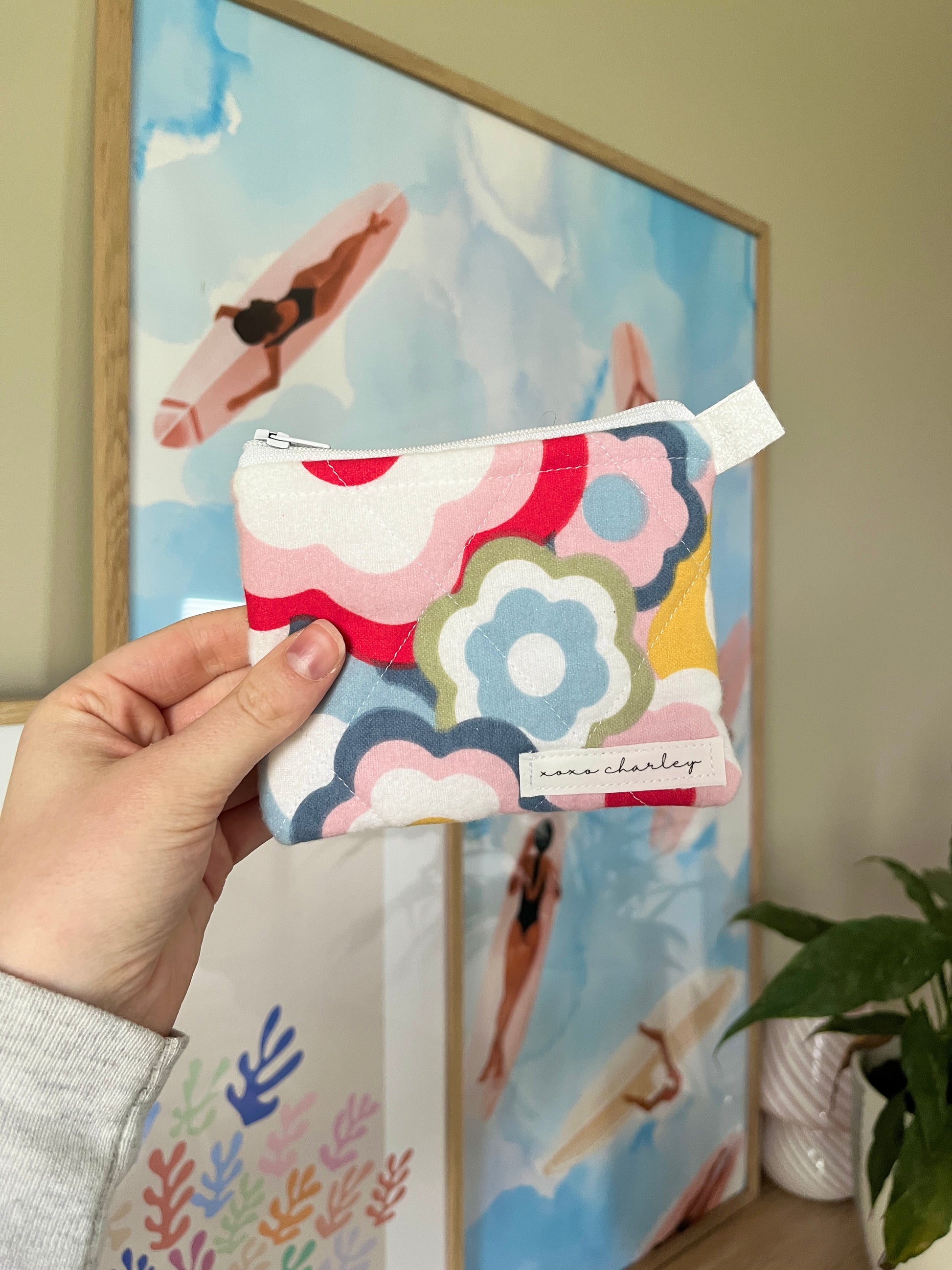 This limited-edition, pretty, and mini bag is 100% handmade and is perfect for holding your essentials in your large tote bag, staying pretty on the vanity, or attaching to your wristlet for a night out or daily activities! Shop the matching wristlets!