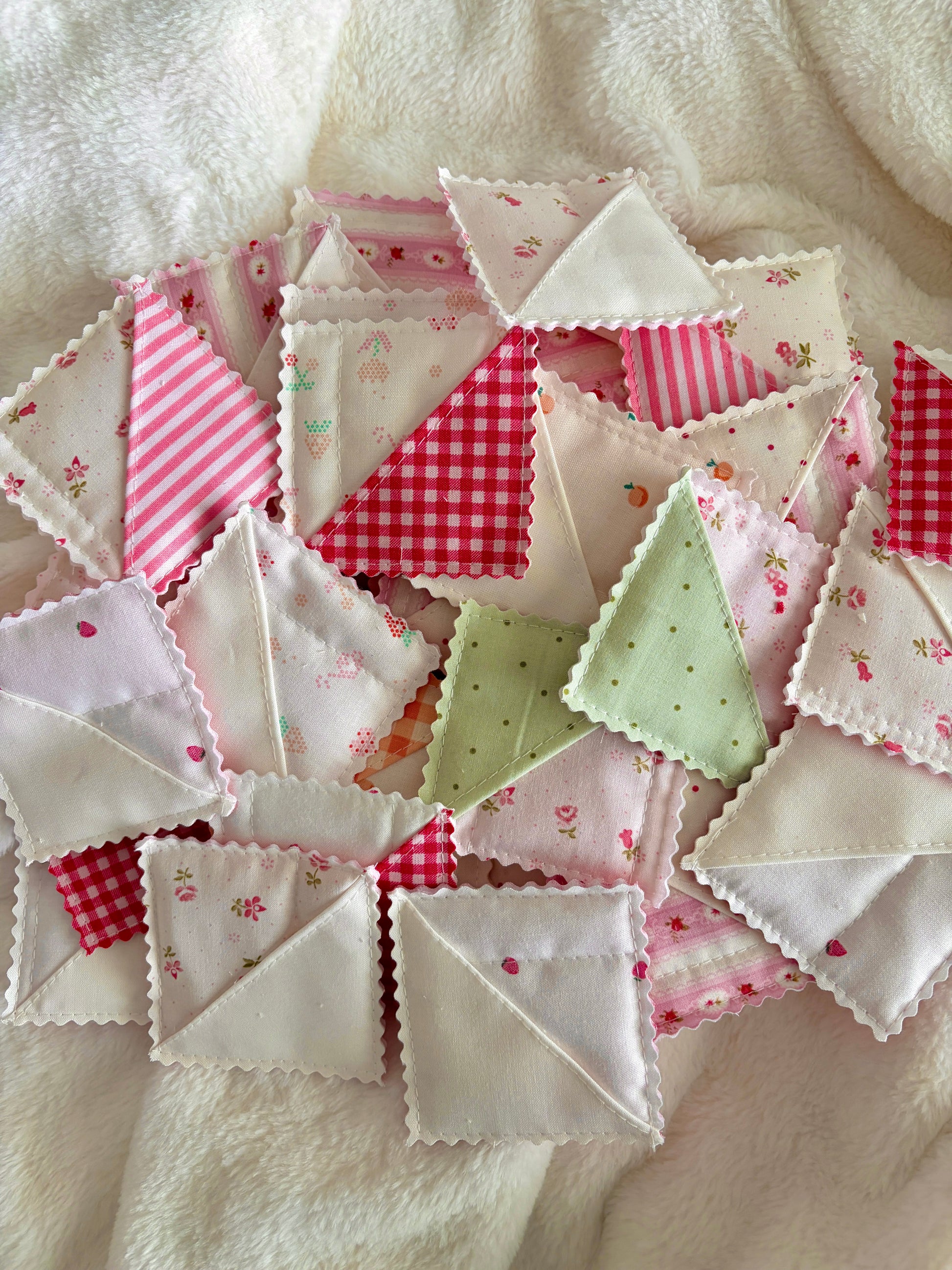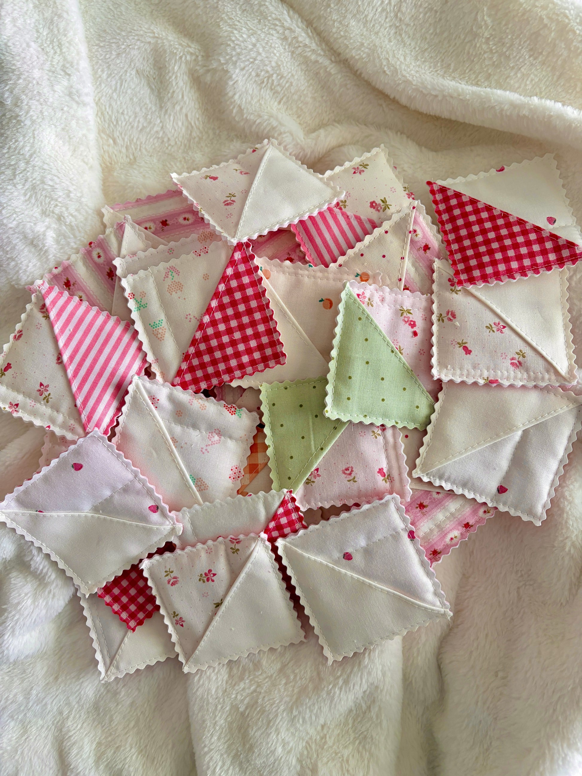 An assortment of fabric corner bookmarks