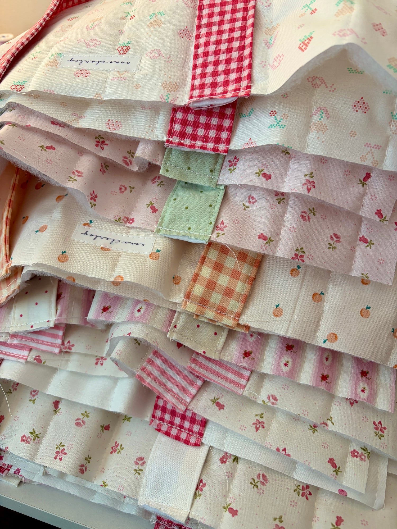 An assortment of fabric corner bookmarks