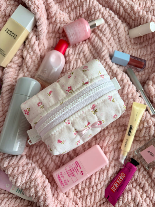 Pixel Picnic Mini Makeup Bag with Light Pink Bow *limited-edition*