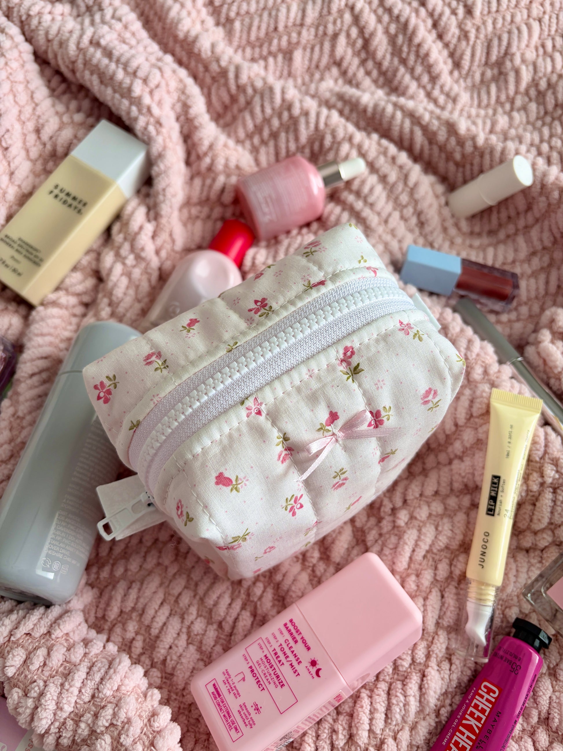 Pixel Picnic Mini Makeup Bag with Light Pink Bow *limited-edition*